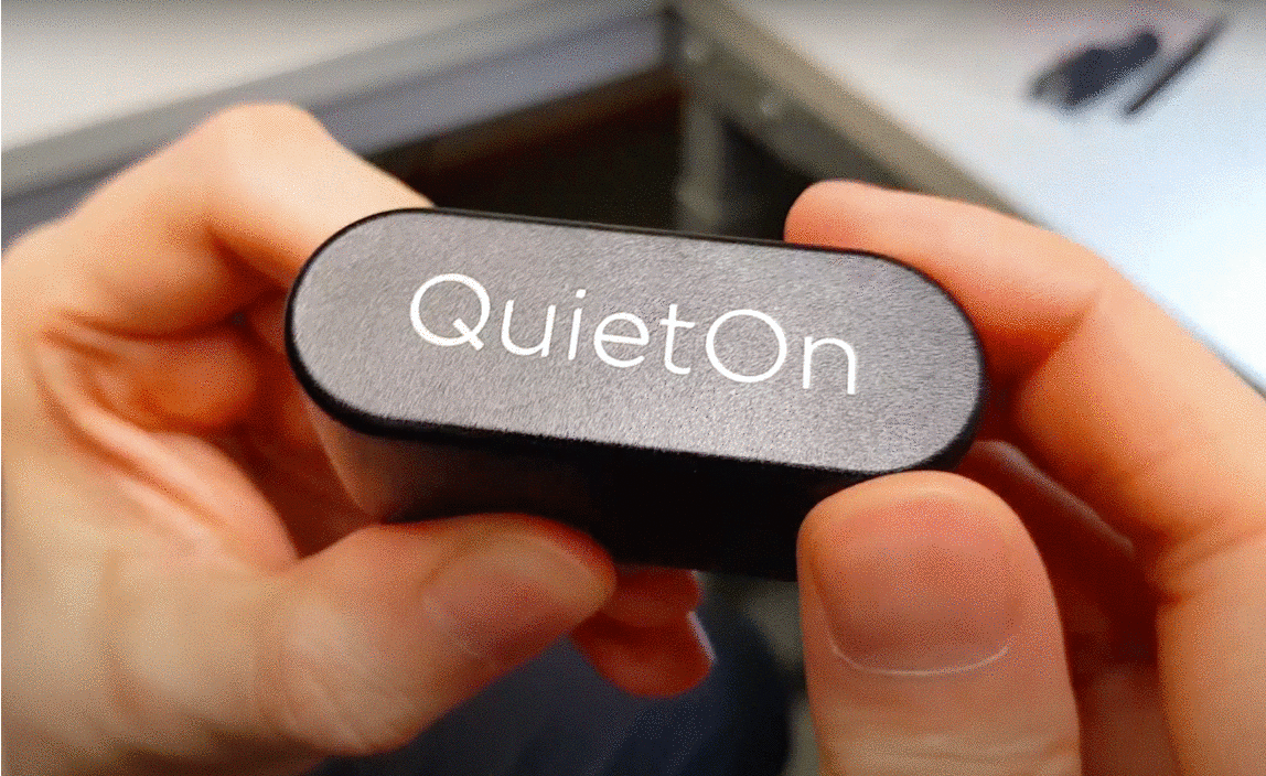 ANC主動降噪技術主要又分為:Feed-forward、Feedback、Hybrid三種降噪系統設計,主要差異在收音麥克風置放的位置,QuietOn從第一代的內置系統到新款的外置系統,能更快偵測到音波訊號,進行數位處理、發送類比反相波,也是現存最小且高效的主動降噪設備,像是BOSE、SONY、APPLE airpods pro等藍芽耳機也使用相同技術來達到降噪效果。