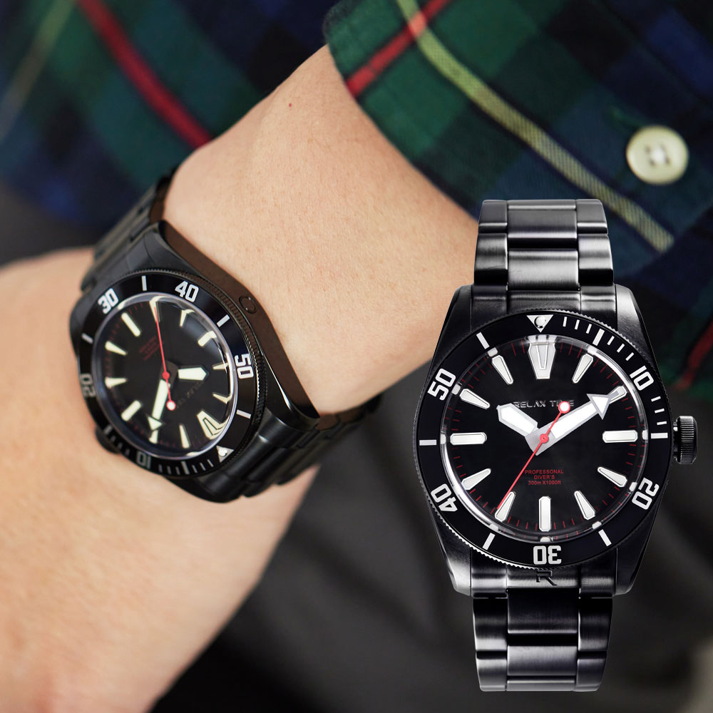 經典潛水外型搭配錶盤超級夜光時標、指針設計,