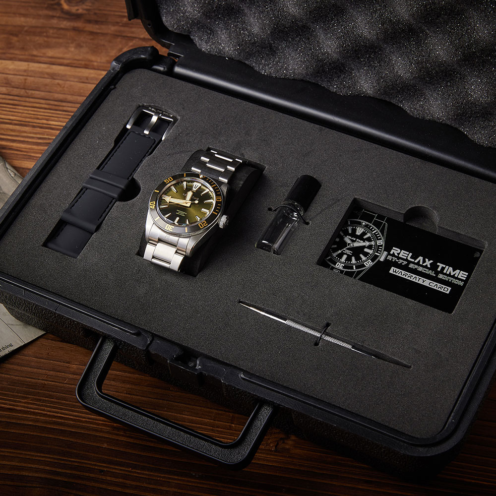 經典潛水外型搭配錶盤超級夜光時標、指針設計,