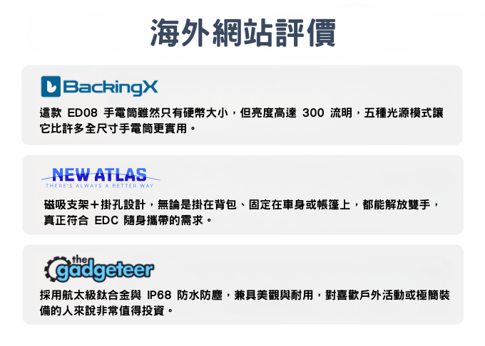 小巧丨輕便丨多功能丨耐用丨每一支 ED08 硬幣手電筒都是精心設計和嚴格測試的結晶。