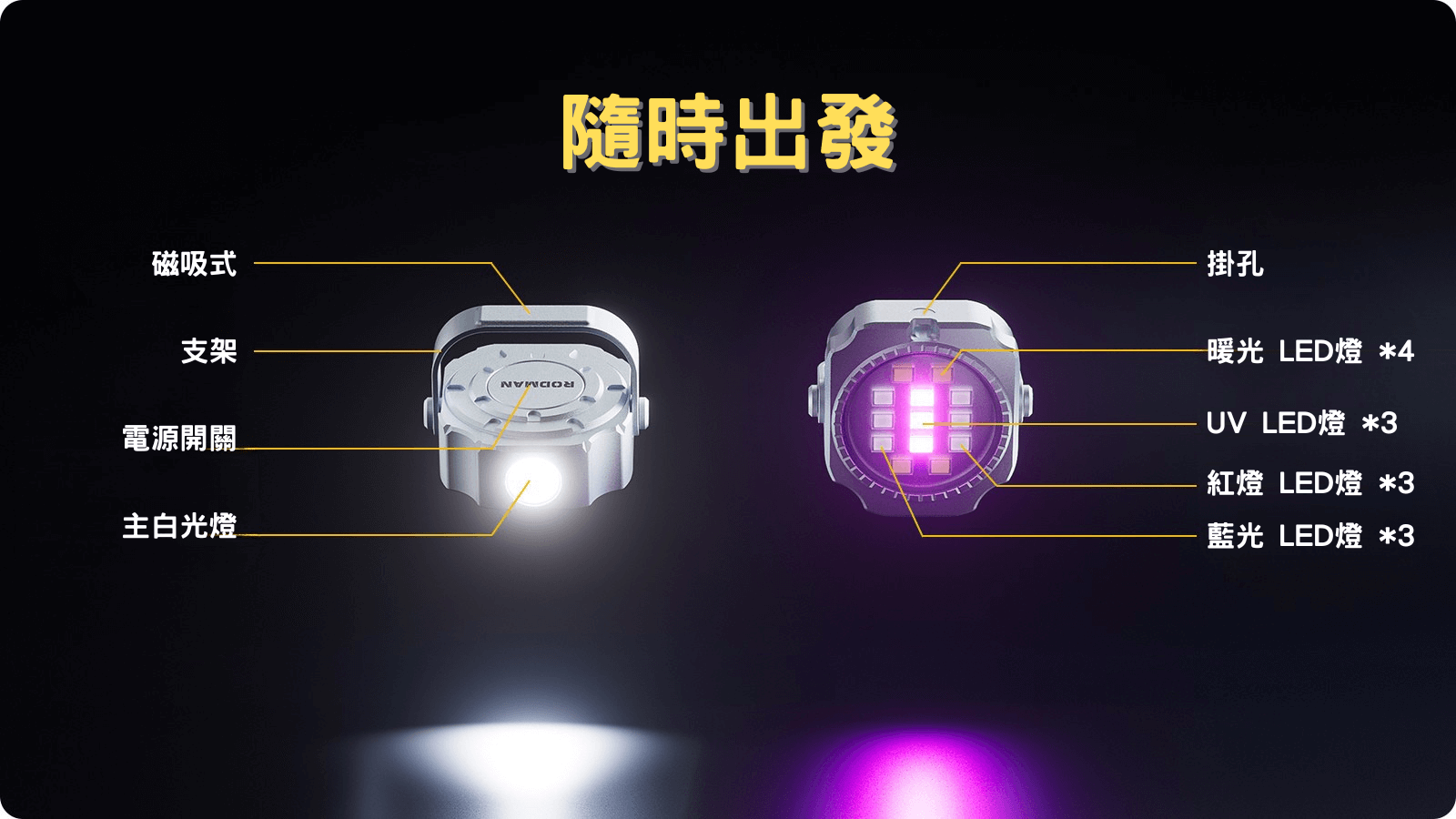 無論是工具箱、汽車改裝,還是帳篷桿、儲物櫃,它都能讓您隨時隨地享受免持照明。