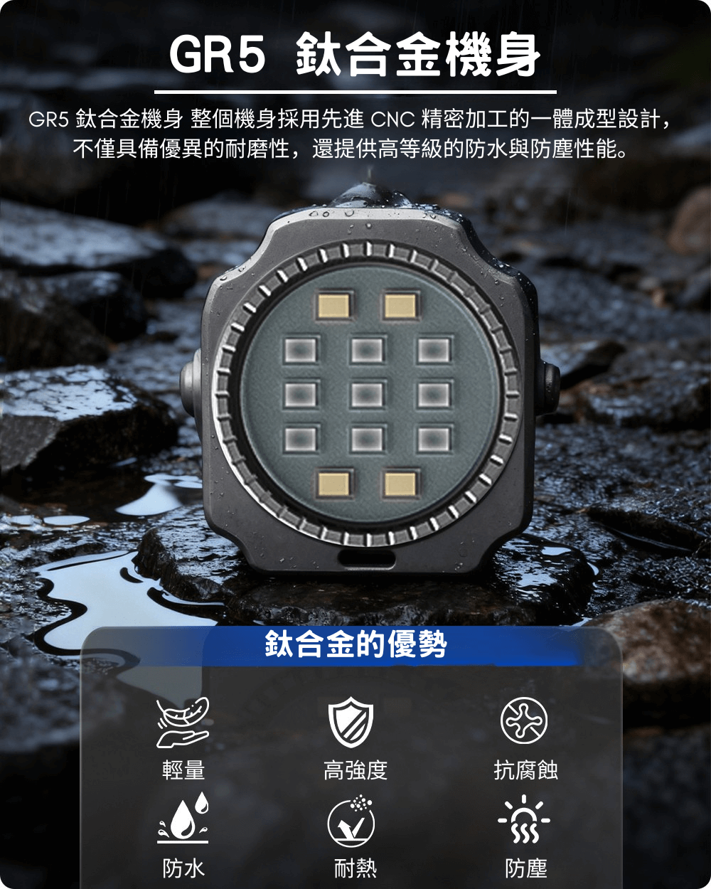ED08 完全採用 GR5 鈦合金製成,兼具卓越耐用性與輕量化設計。即使在最嚴苛、最具挑戰性的環境下,也能保持穩定可靠的表現。