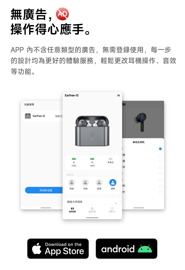 ●降噪/通透/普通三種模式可選
