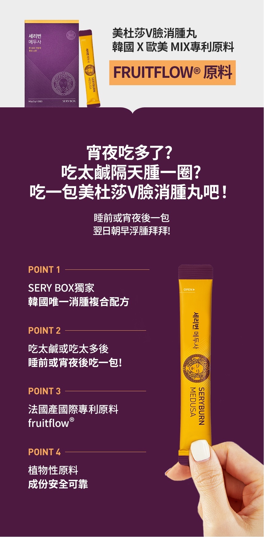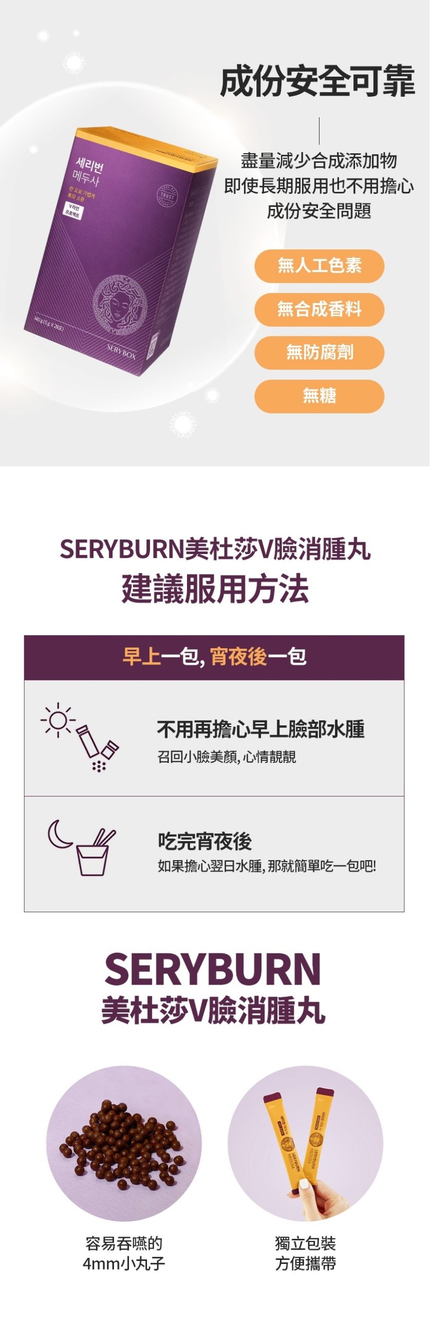 搶先留言 “【SERYBOX】SERYBURN 美杜莎V臉消腫丸 | 消腫V臉急救 (品牌直送)”