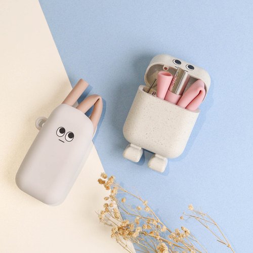 將矽膠吸管對折放入吸管收納盒,體積縮小攜帶更加便利!