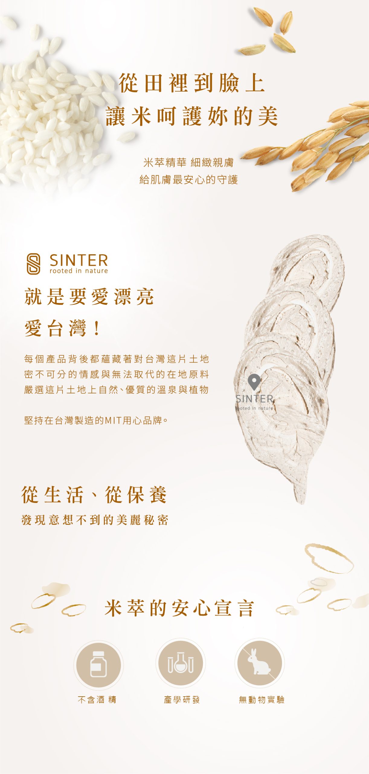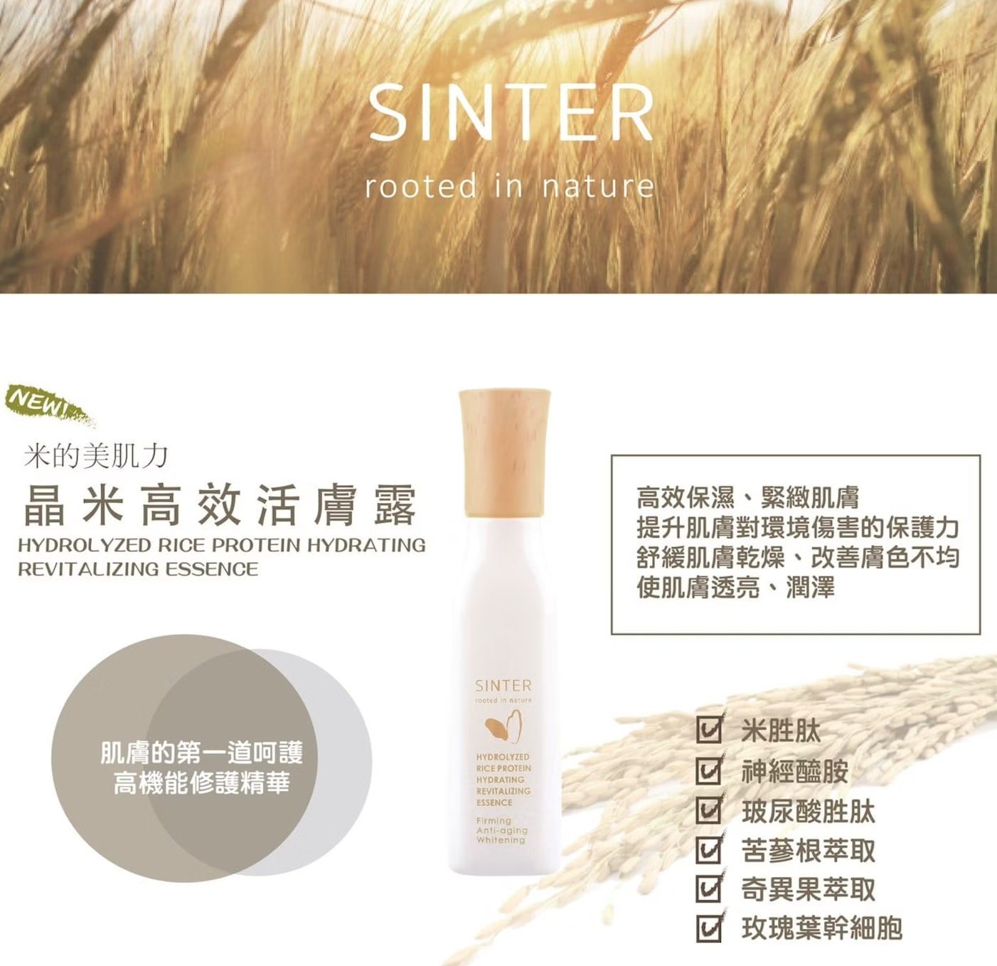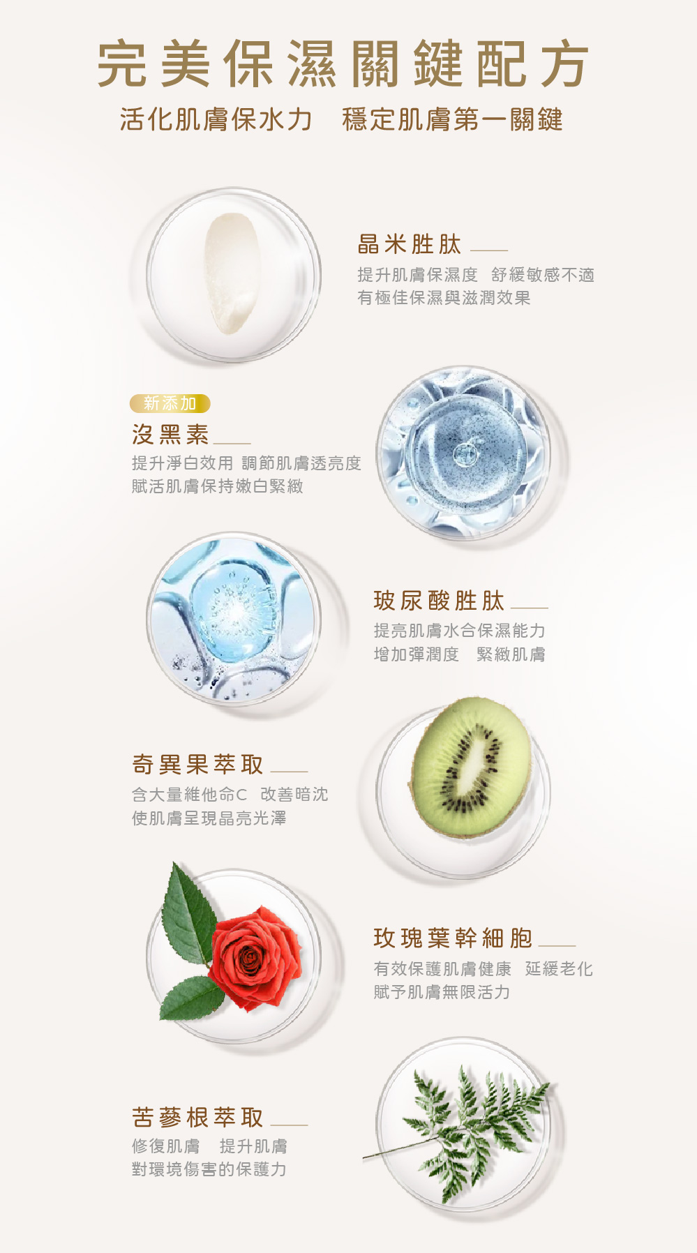 米萃取含豐富胺基酸及小分子蛋白與肌膚相容性佳,能滋養肌膚,使肌膚恢復健康狀態,達到保濕、提升肌膚對環境傷害的保護力及舒緩肌膚乾燥。 水份加養分雙高活膚精華,促使肌膚強化滲透,能到達皮膚角質層,達到緊緻肌膚、降低膚色不均問題,使肌膚透亮、潤澤。