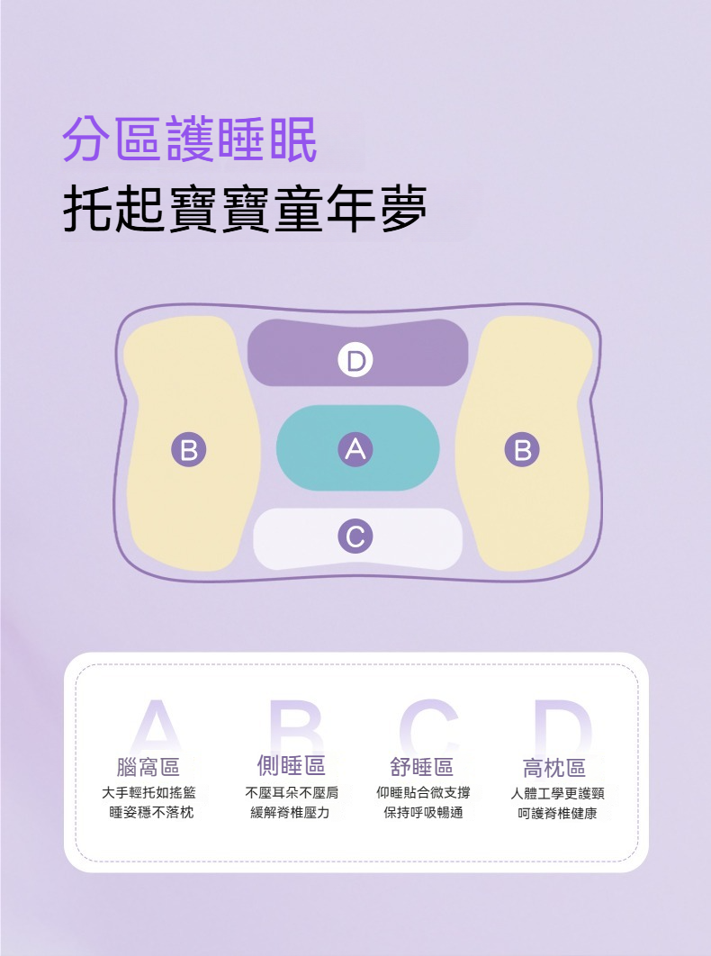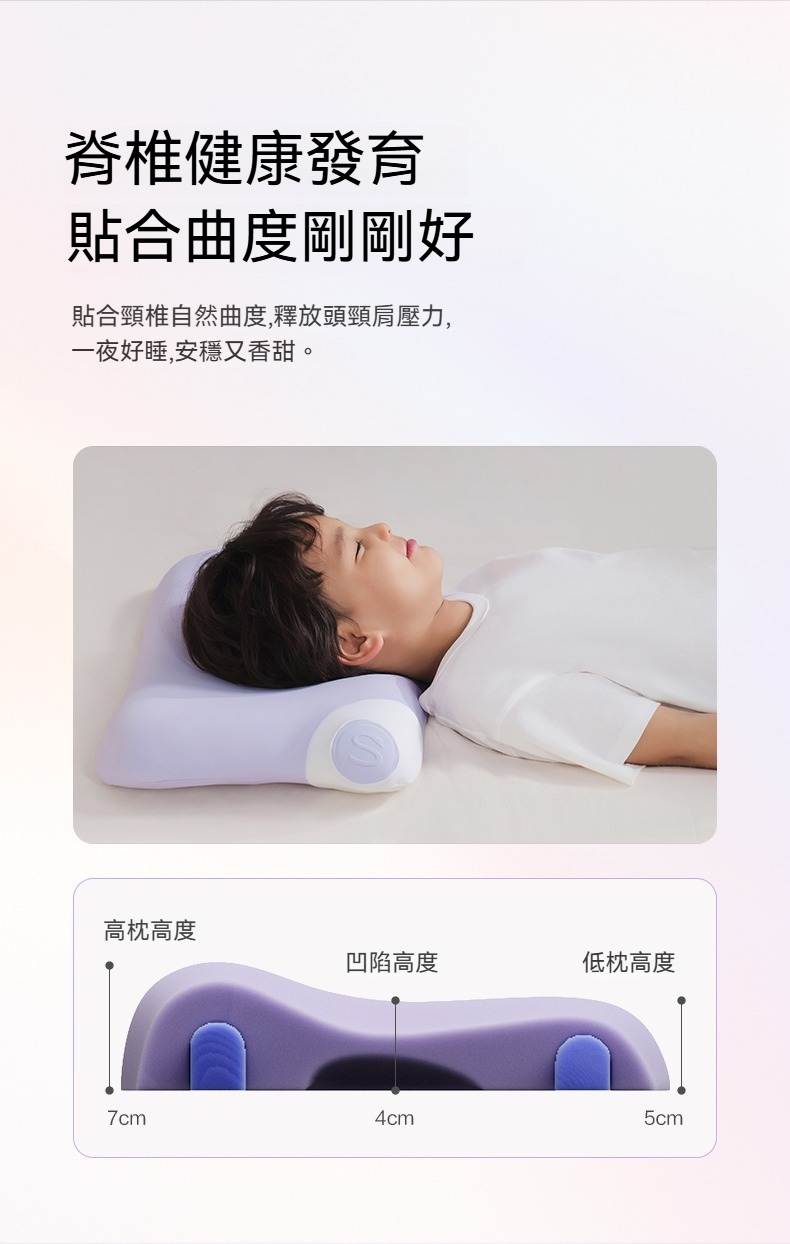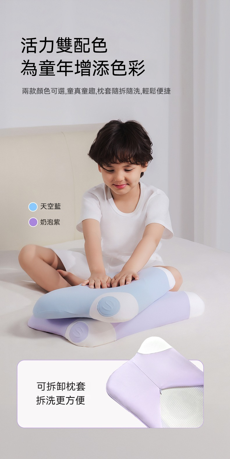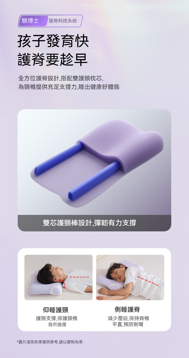 科學分區護頸設計,專為3-12歲脊椎弧度研發的凹槽中空結構,