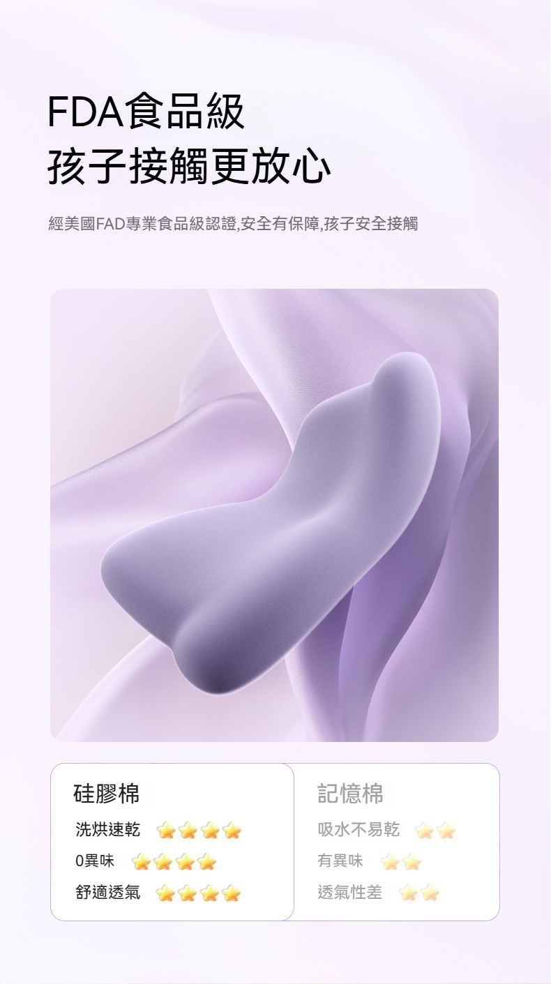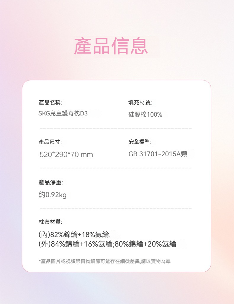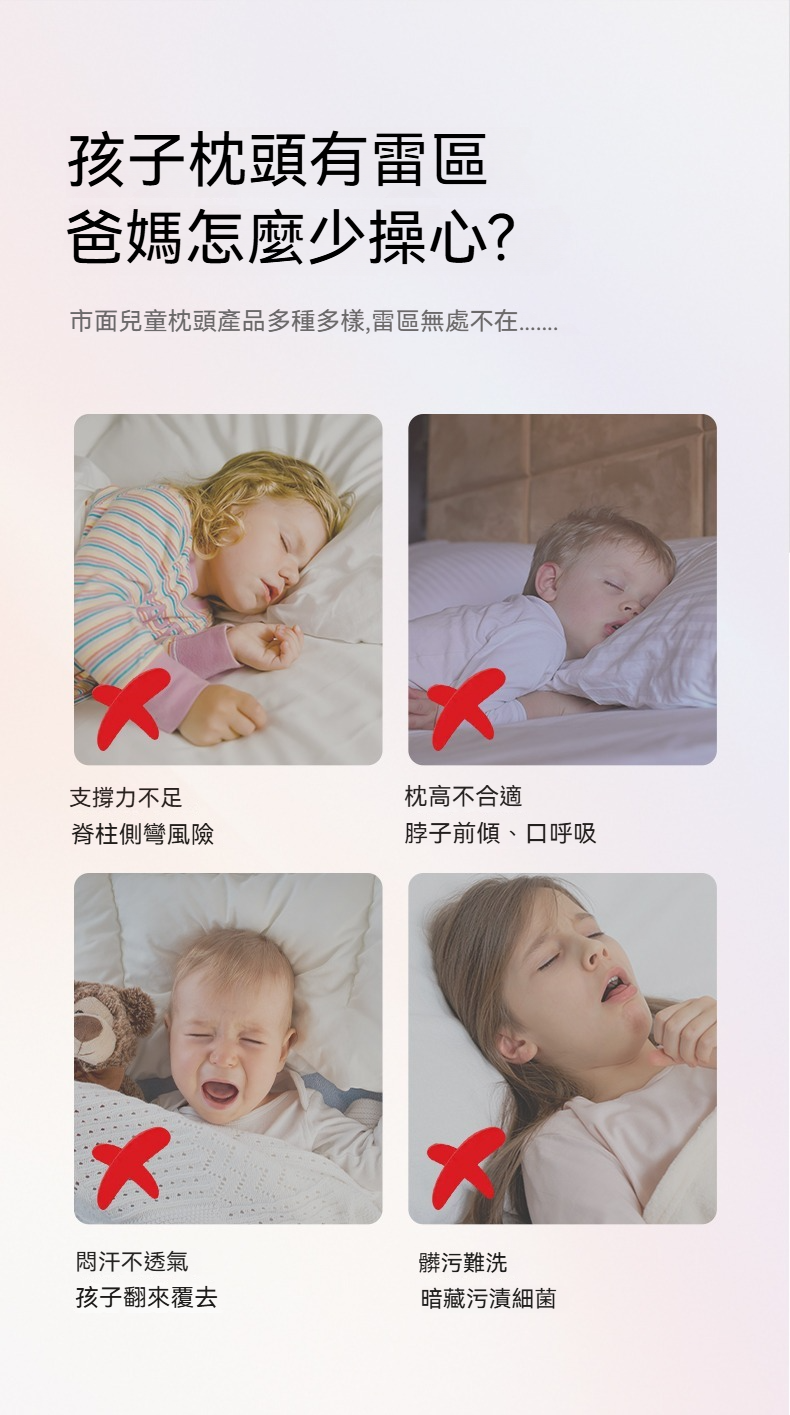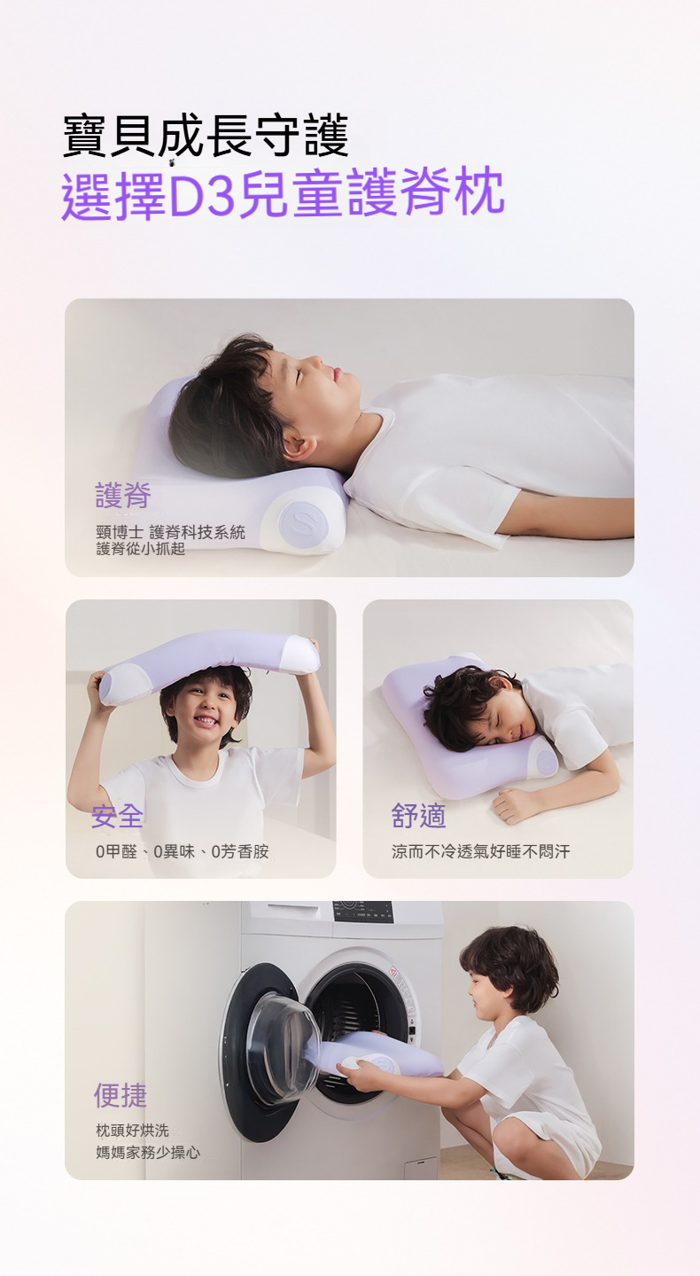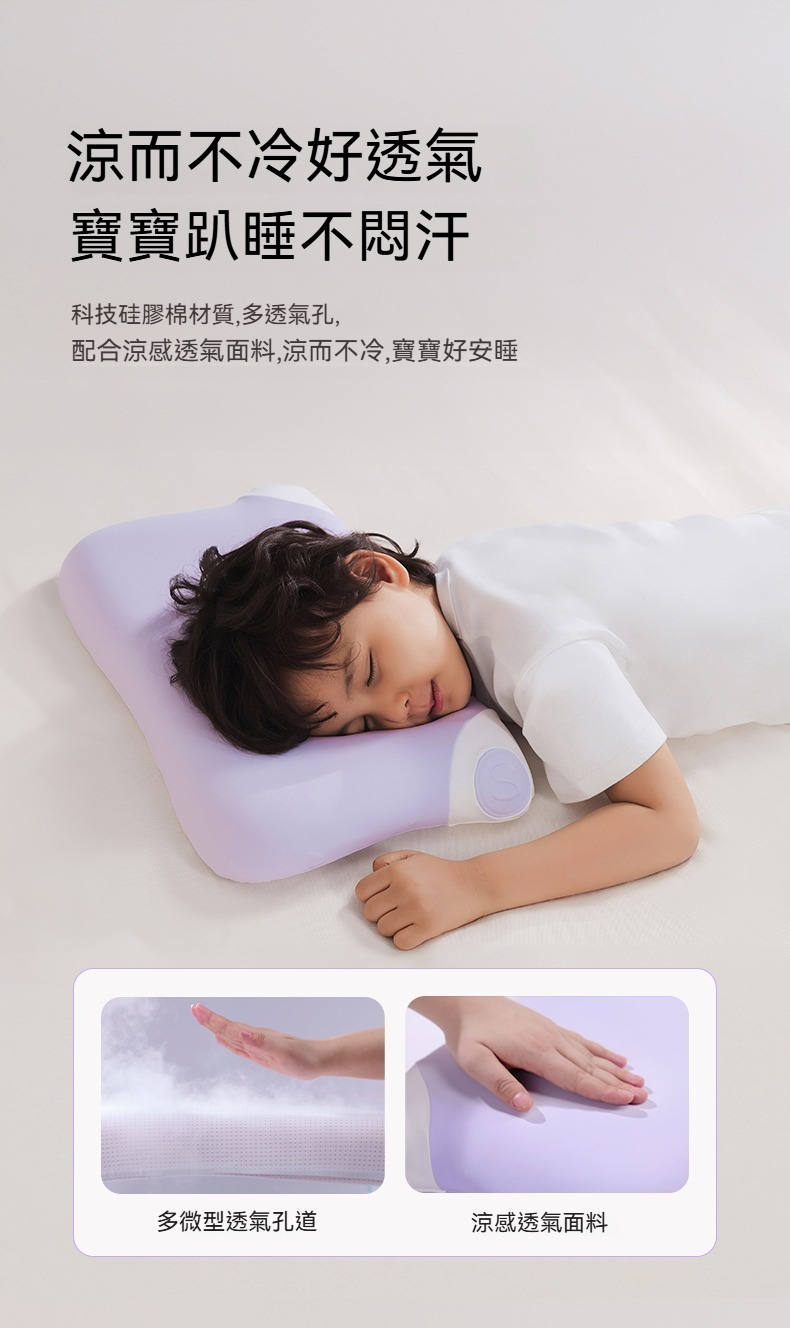 科學分區護頸設計,專為3-12歲脊椎弧度研發的凹槽中空結構,