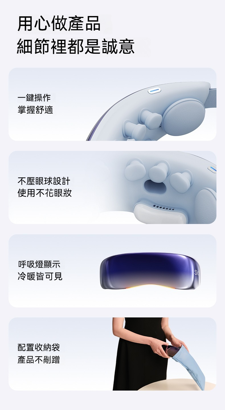 仿人手穴位揉壓,智能氣囊覆蓋8大眼周穴位,