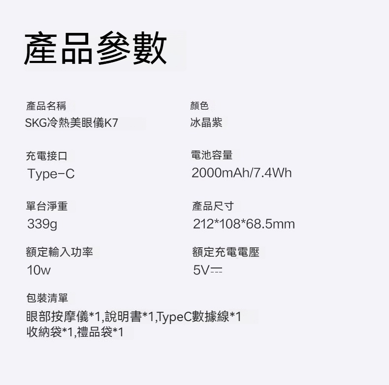 產品名稱 SKG冷熱美眼儀K7
