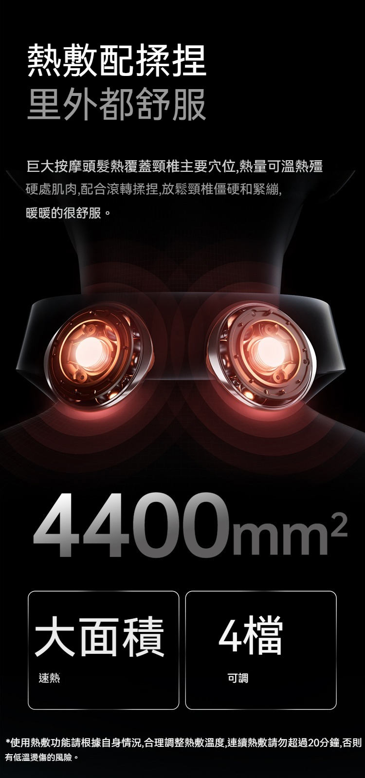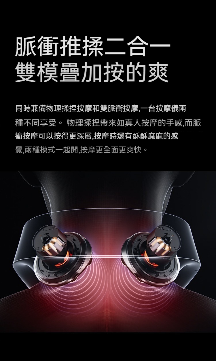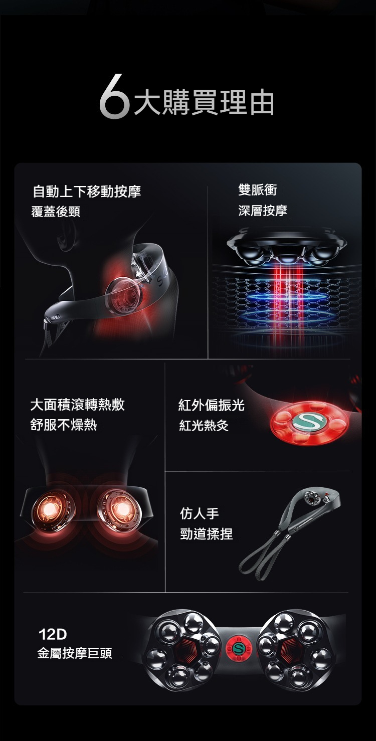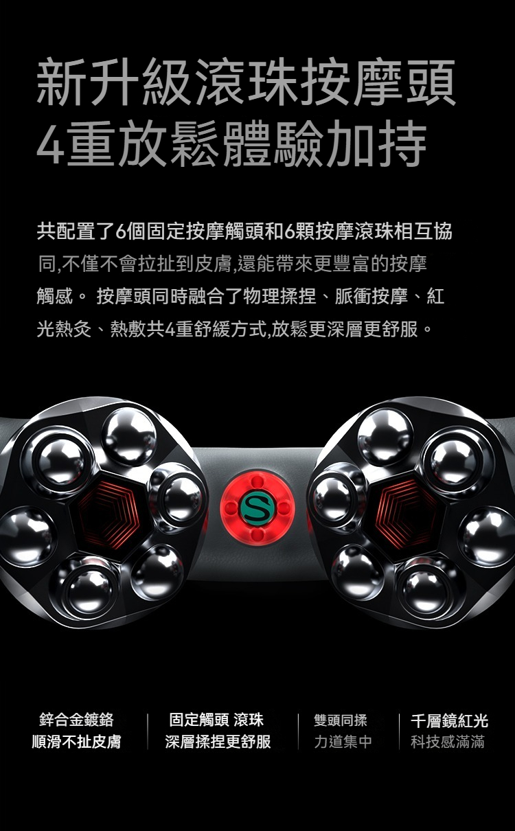 大面積滾轉熱敷|仿人手勁道揉捏|12D金屬按摩巨頭