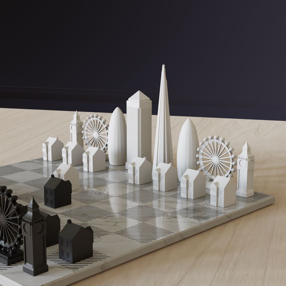 採取東京與倫敦的標誌性建築,並將地標重新想像成棋盤上的棋子,兩個城市的故事,但你的選擇是哪裡?