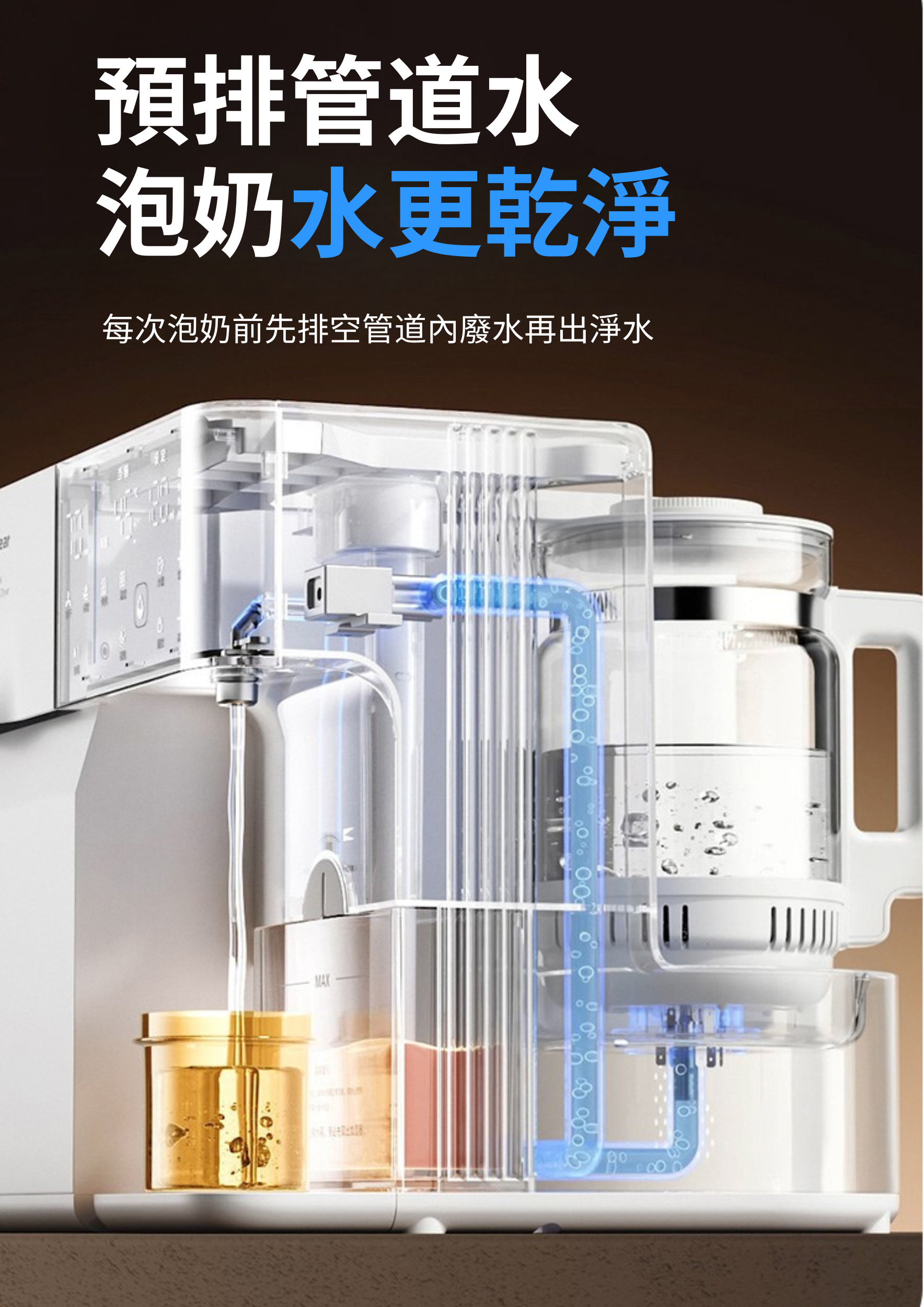 ✅在中國享專利Solen-clarification 水通道淨化技術,排空機身管道餘水,看得見的純淨。