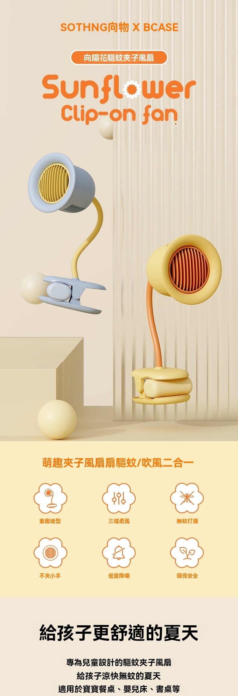 SOTHNG x BCASE 太陽花驅蚊夾式小風扇 (品牌直送)