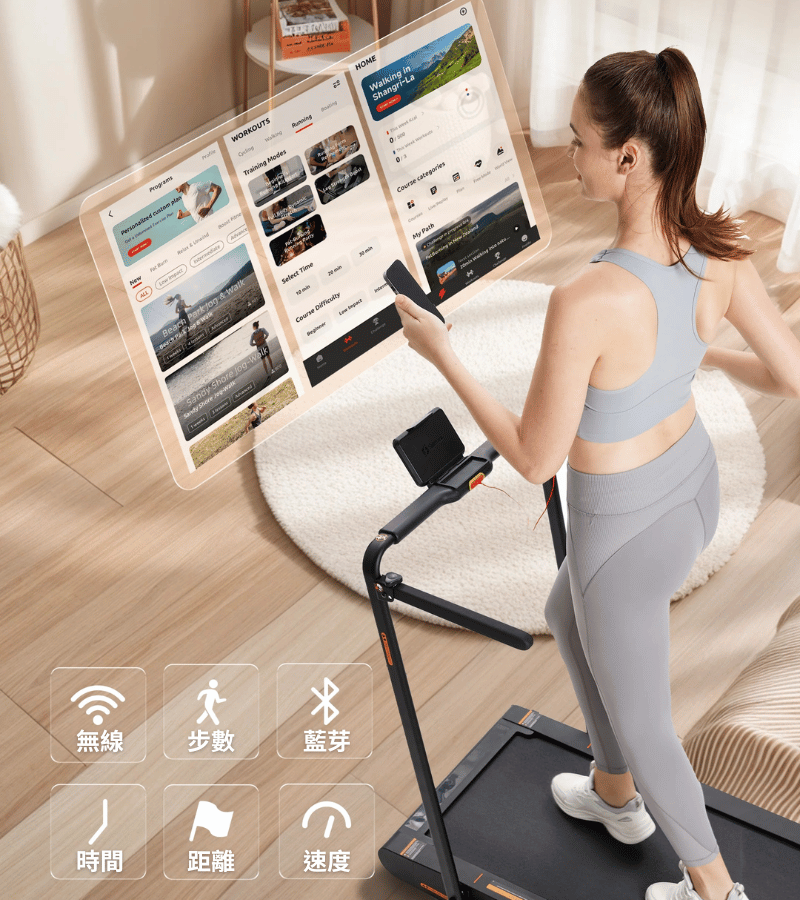 A: 是的,支援配合官方 App 連線,可同步記錄速度、時間、距離等運動數據,方便追蹤進度。
