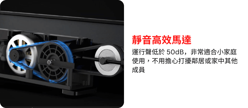 A: 採用靜音馬達設計,運行聲低於 50 dB,但在高速度或振動強度模式下仍會有正常運動機械聲。