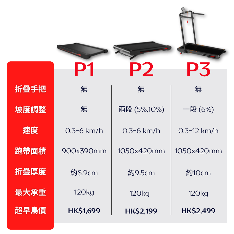 - 跑帶尺寸:1050 mm x 420 mm