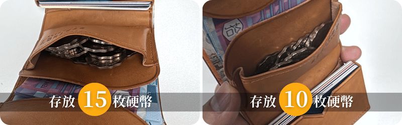▼ 存放 15 和 10 枚硬幣 之收納效果對比