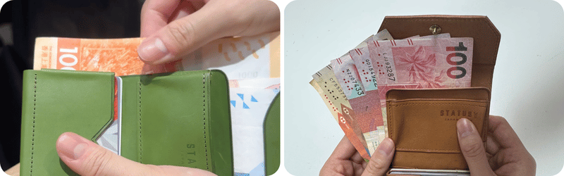 完美貼合:此外,我們採用了層壓技術,將主要皮革(正面的皮革和鈔票放置區域)進行層壓。透過將兩片薄皮革緊密貼合,不僅提升了美觀性,也增強了耐用性,使鈔票的存取更加便利