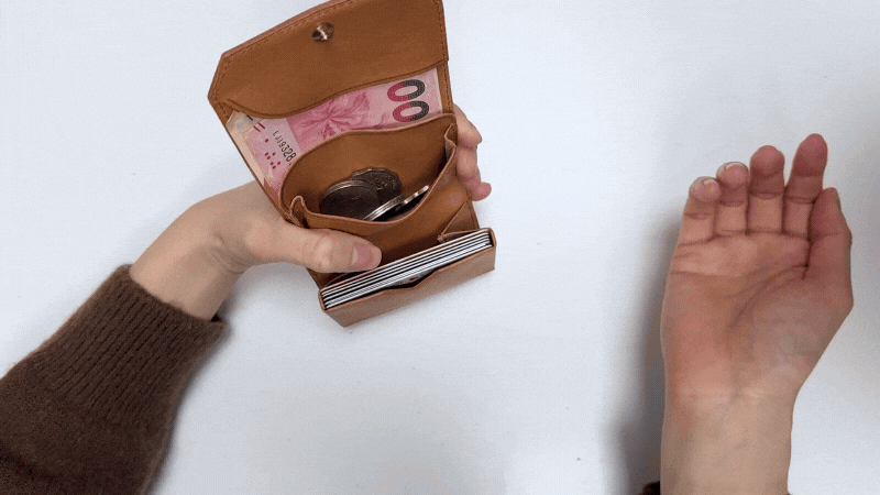 A: 可容納15張鈔票、15枚硬幣、10張卡片及少量收據和鑰匙。