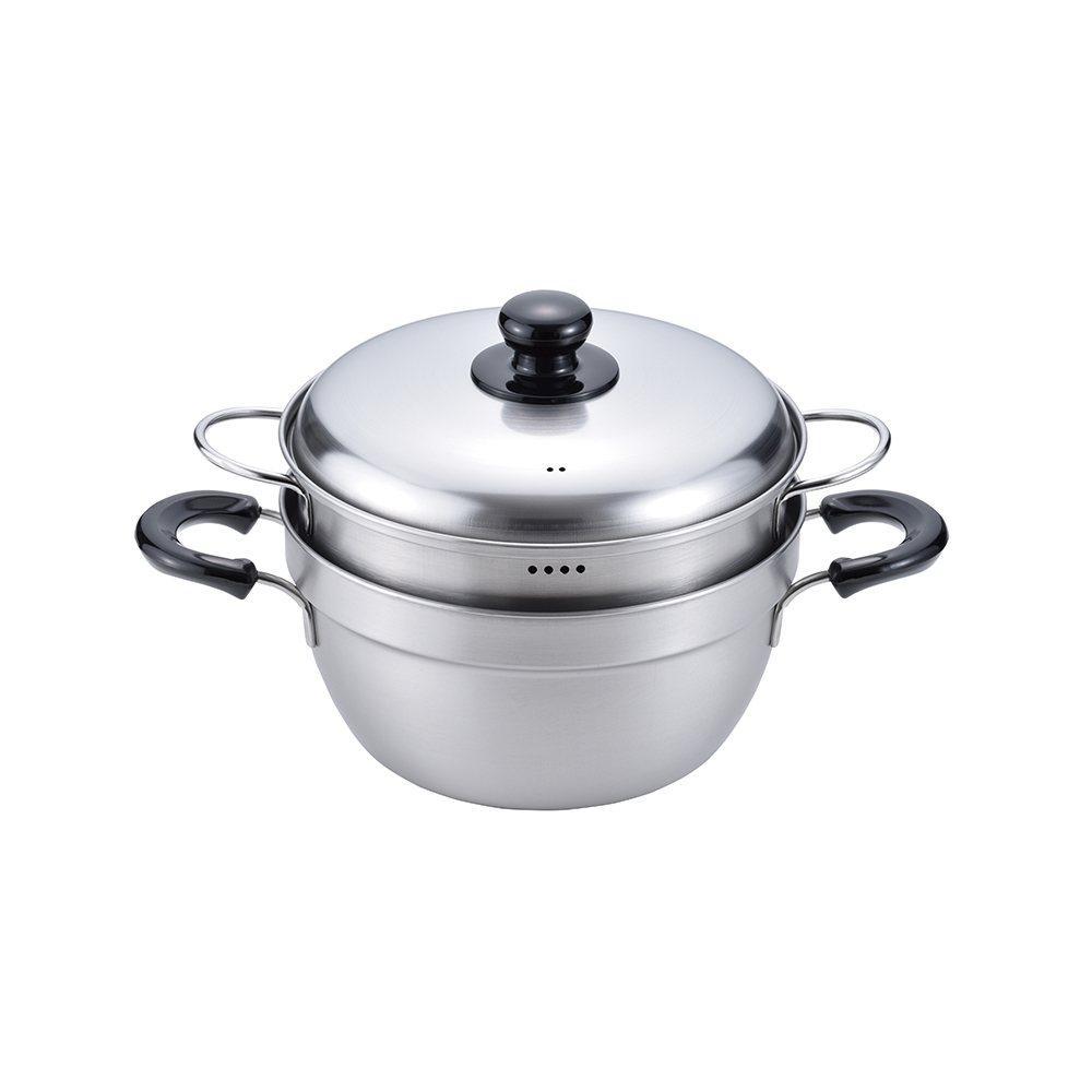 家中必備一個傳熱快易打理的防滾瀉不鏽鋼煲,無論煲水或加熱醬汁、湯、牛奶、麵食等都手到拿來!來自日本的鐵藝勝地新潟燕三条的燕三,經熟練職人設計加工的雙耳煲,擁有傳熱良好的304不鏽鋼三文治夾層工藝,配上蓋子,要炮製一煲美味的煮物完全不費神!防滾瀉系列採用較深的鍋邊設計防止湯汁溢出,適合用來燉煮和加熱食物,只要設定計時器即可,不用看鍋更省時。配備蒸籠,一鍋二用,更讓你快速上蒸下煮,快速煮出三餸一湯,好好享受用餐時間。