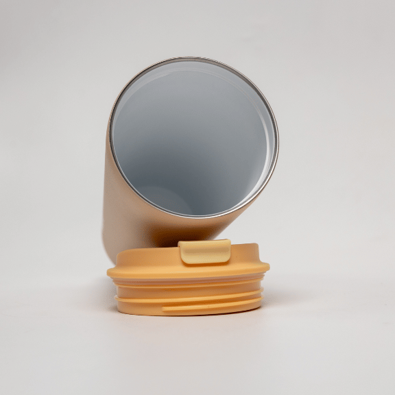 A:全杯使用食品級材質,杯身為304不鏽鋼與淨瓷塗層內裡,杯蓋為PP搭配矽利康。