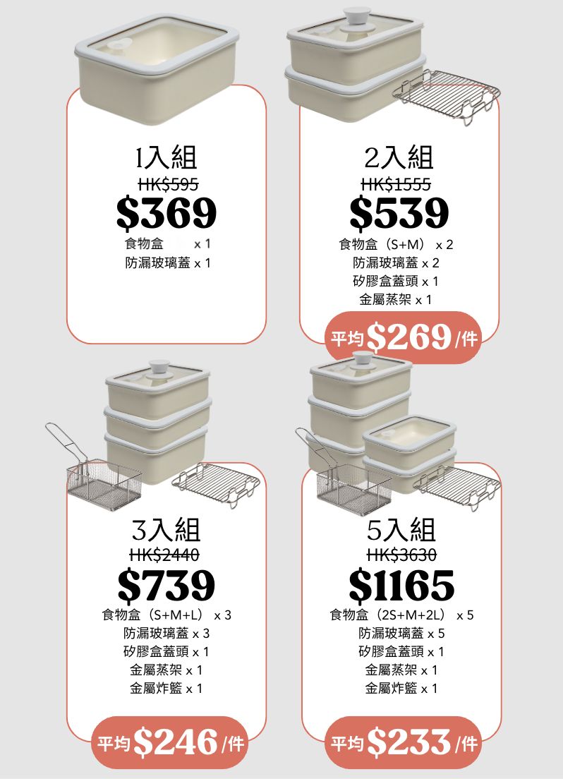 3件組合自由搭配出分隔保鮮盒、多功能煮餐盒或分層分隔食物盒