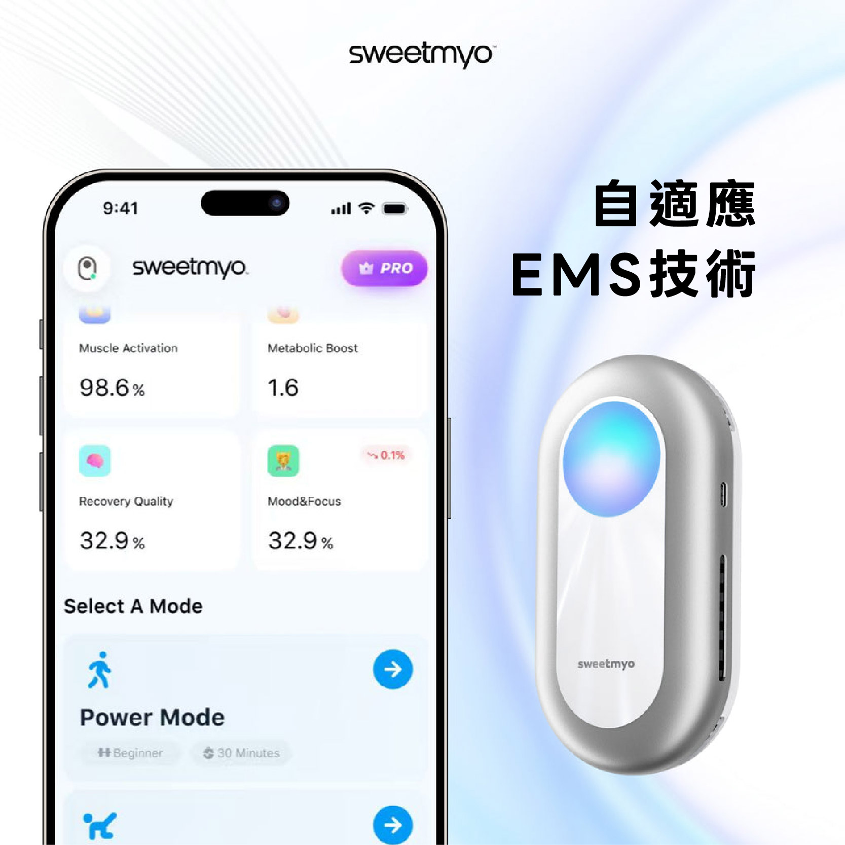 A:EMS(Electrical Muscle Stimulation,電肌肉刺激)是一種透過低電壓微電流直接刺激神經與肌肉纖維的技術,誘發肌肉收縮。常應用於健身增肌、復健減痛及美容緊緻,能在短時間內達成深層肌肉訓練,促進循環。Sweetmyo 使用新世代肌肉刺激技術,並非傳統的 EMS。