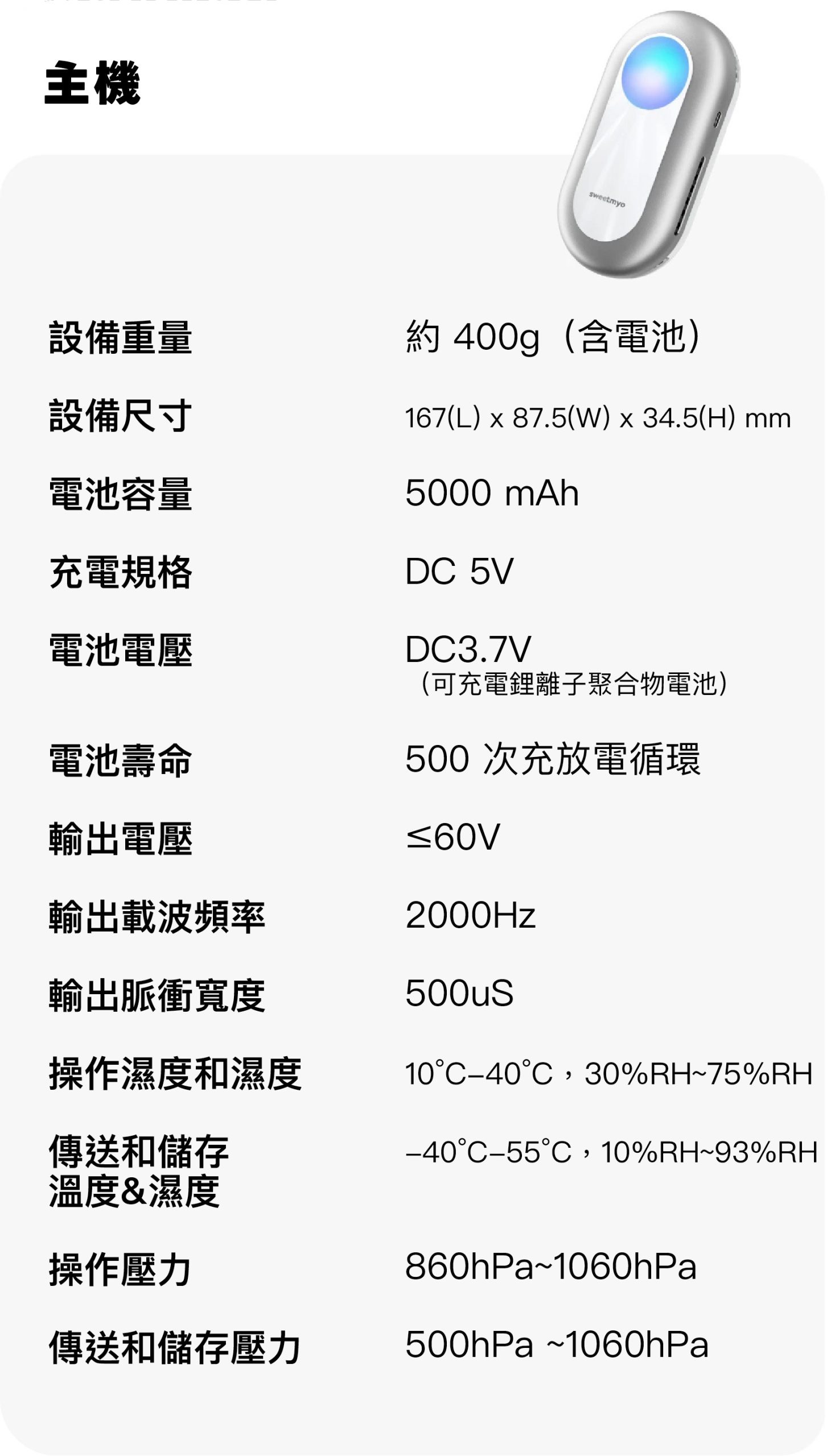 - 正弦波訊號(非方波脈衝) → 更平滑、更深層、無痛啟動