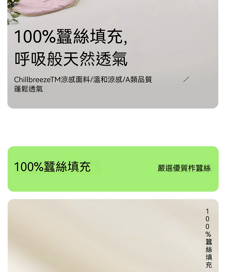 溫和涼感|蓬松透氣|100%蠶絲填充