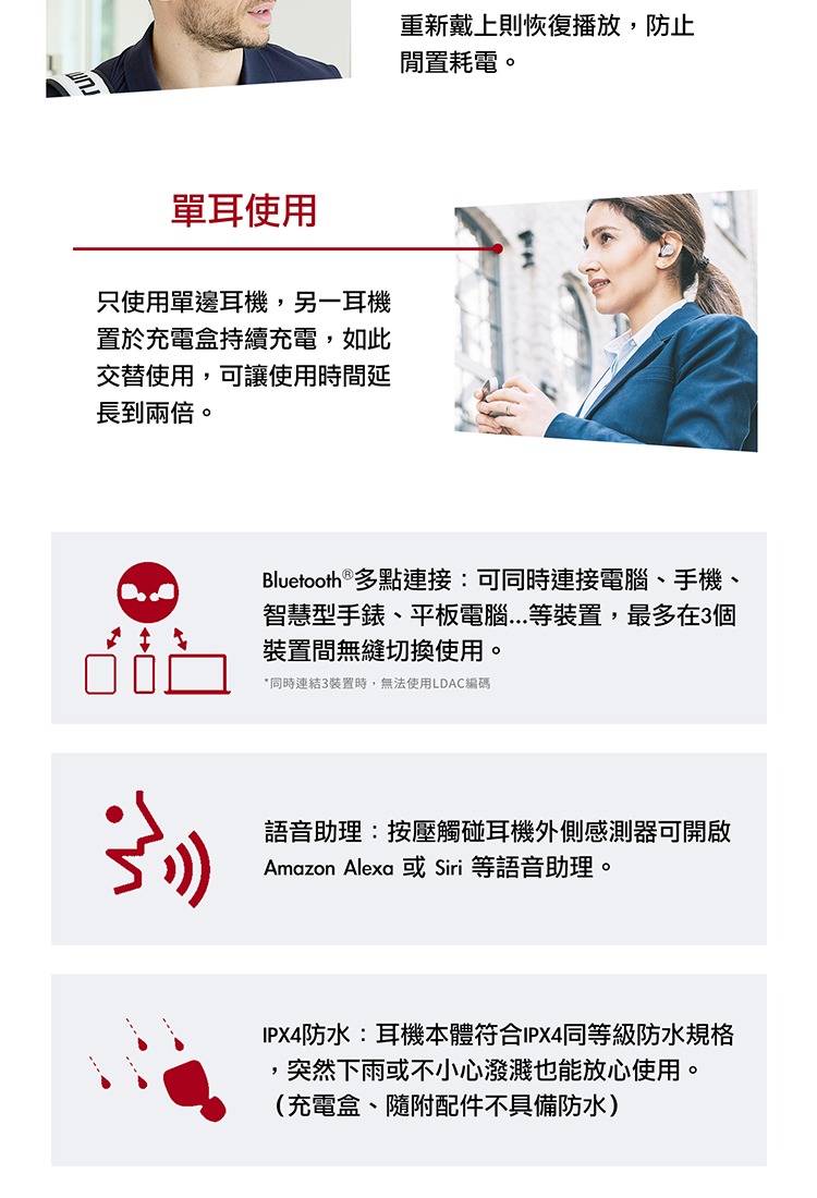 通話時間:單耳機4H、含充電艙13.5H(*ANC/JMV ON)