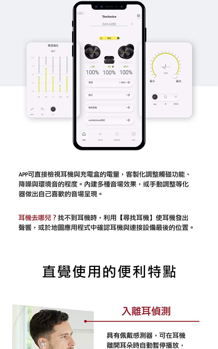 ・配戴感測,離耳自動暫停音樂,重新戴上恢復播放