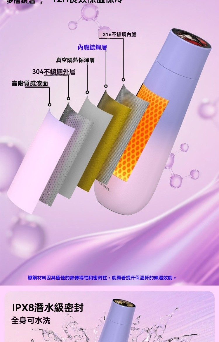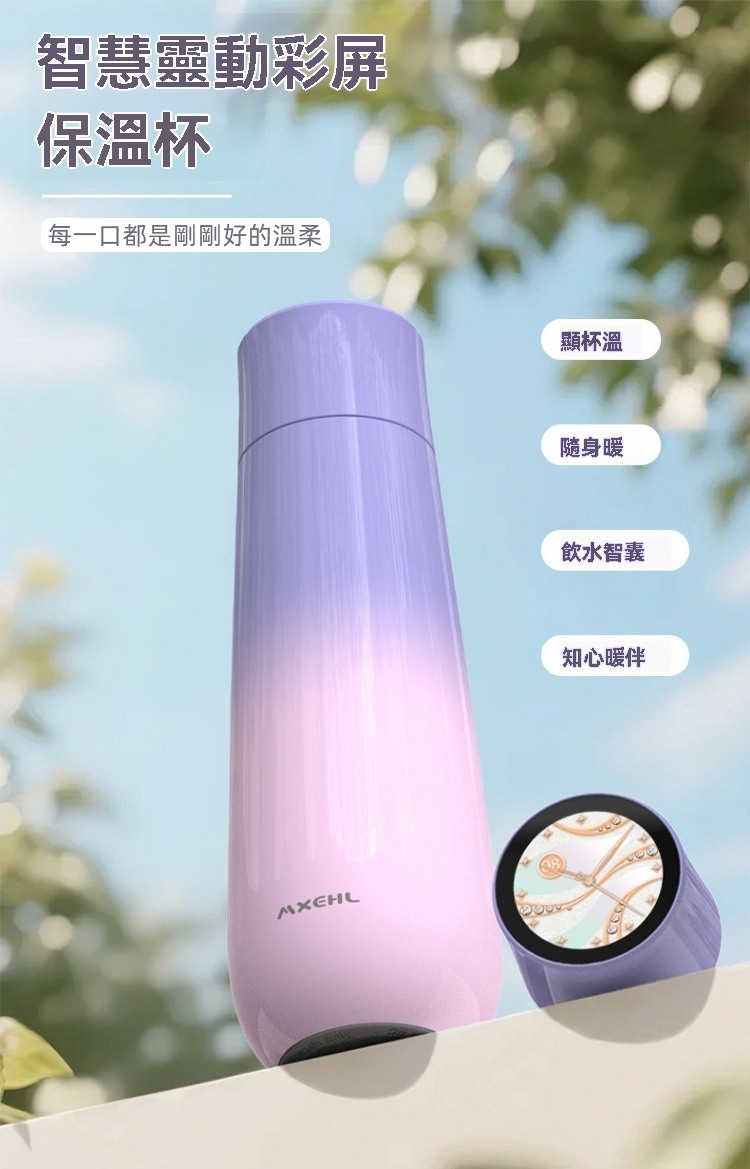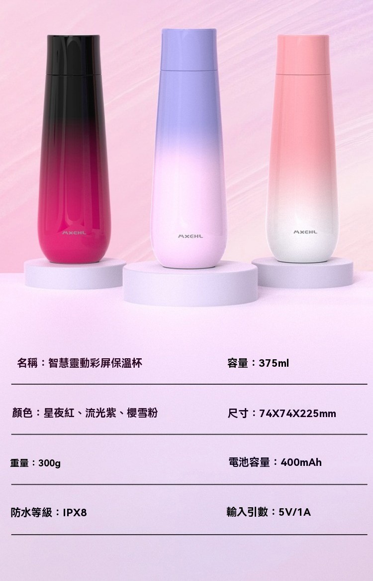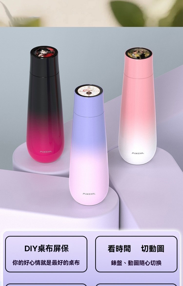 彩屏保温杯 渐变黑 400ML, 彩屏保溫杯 漸變粉 400ML, 彩屏保溫杯 漸變紫 400ML