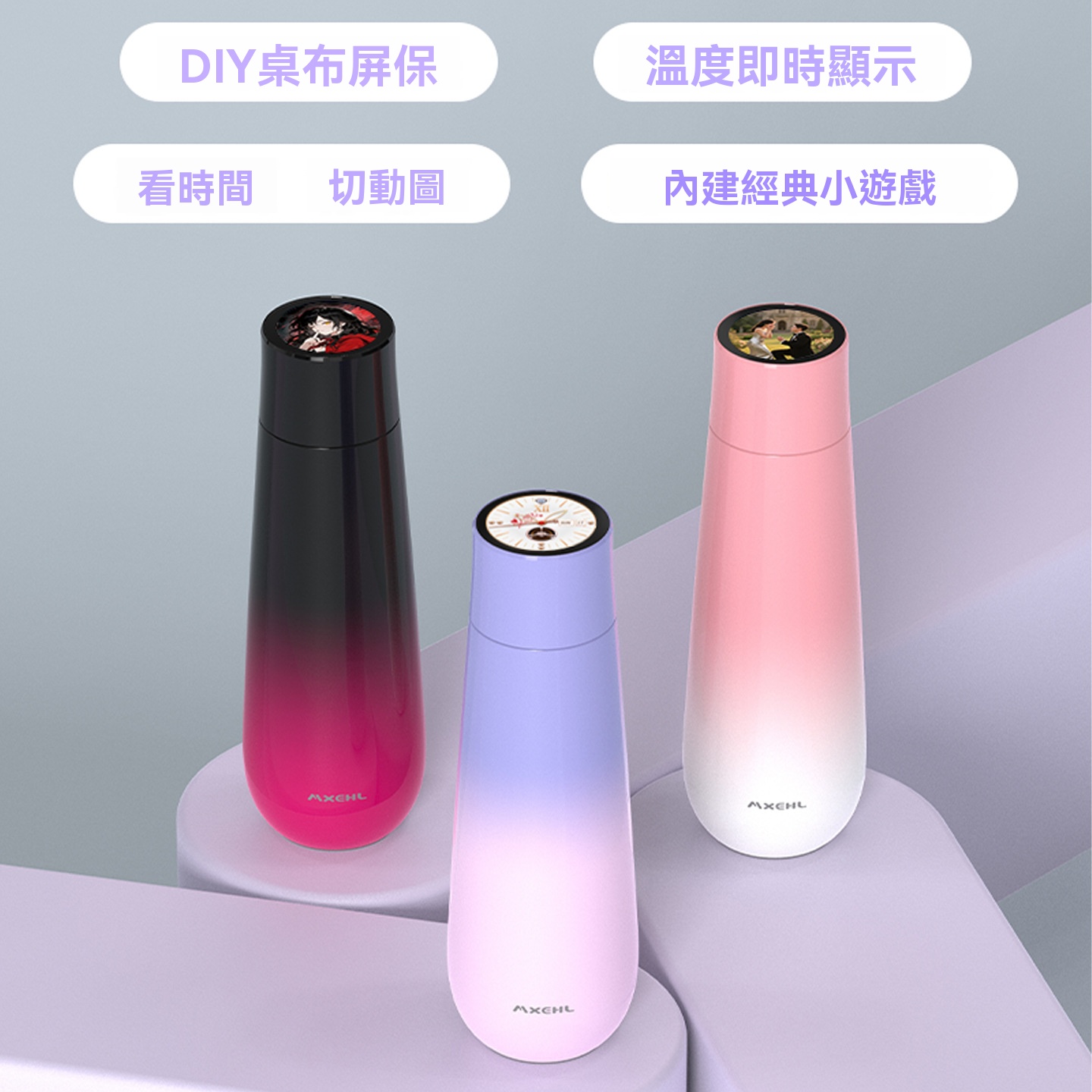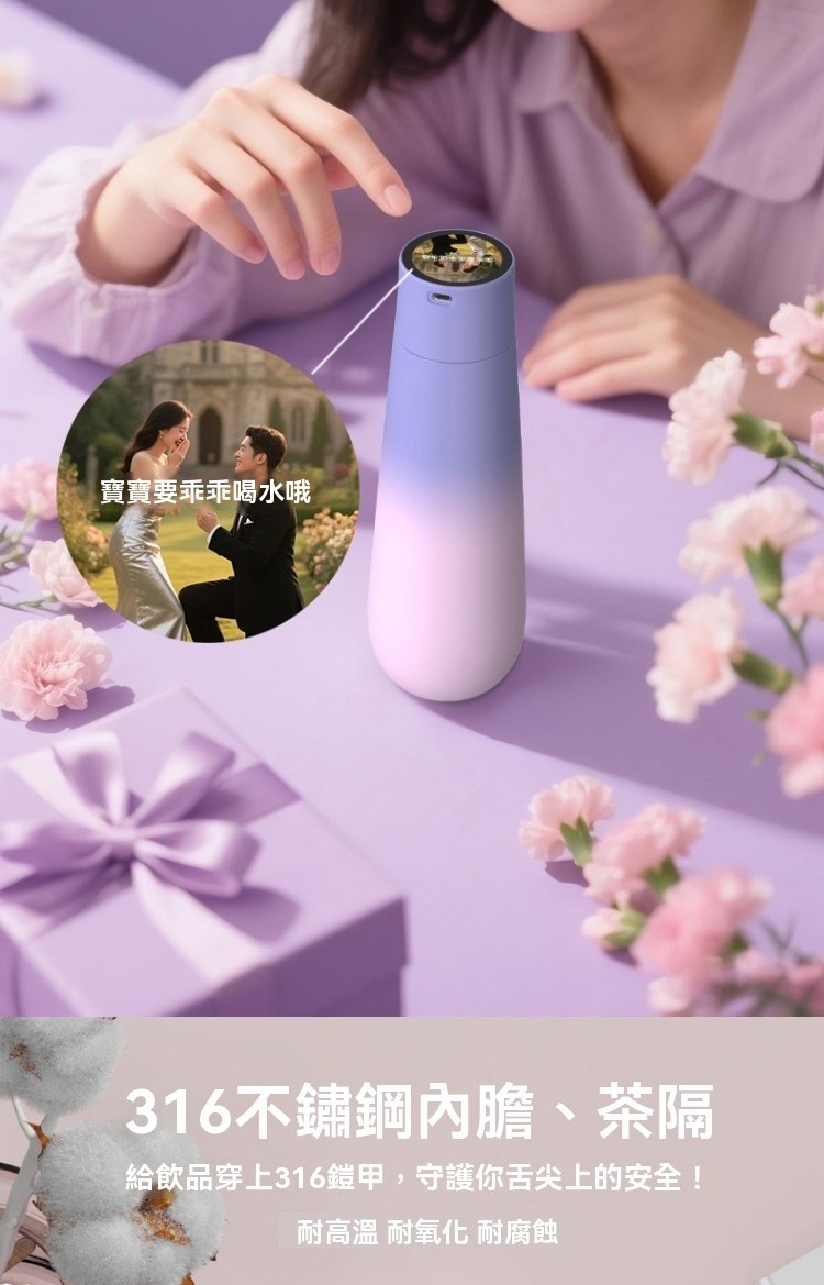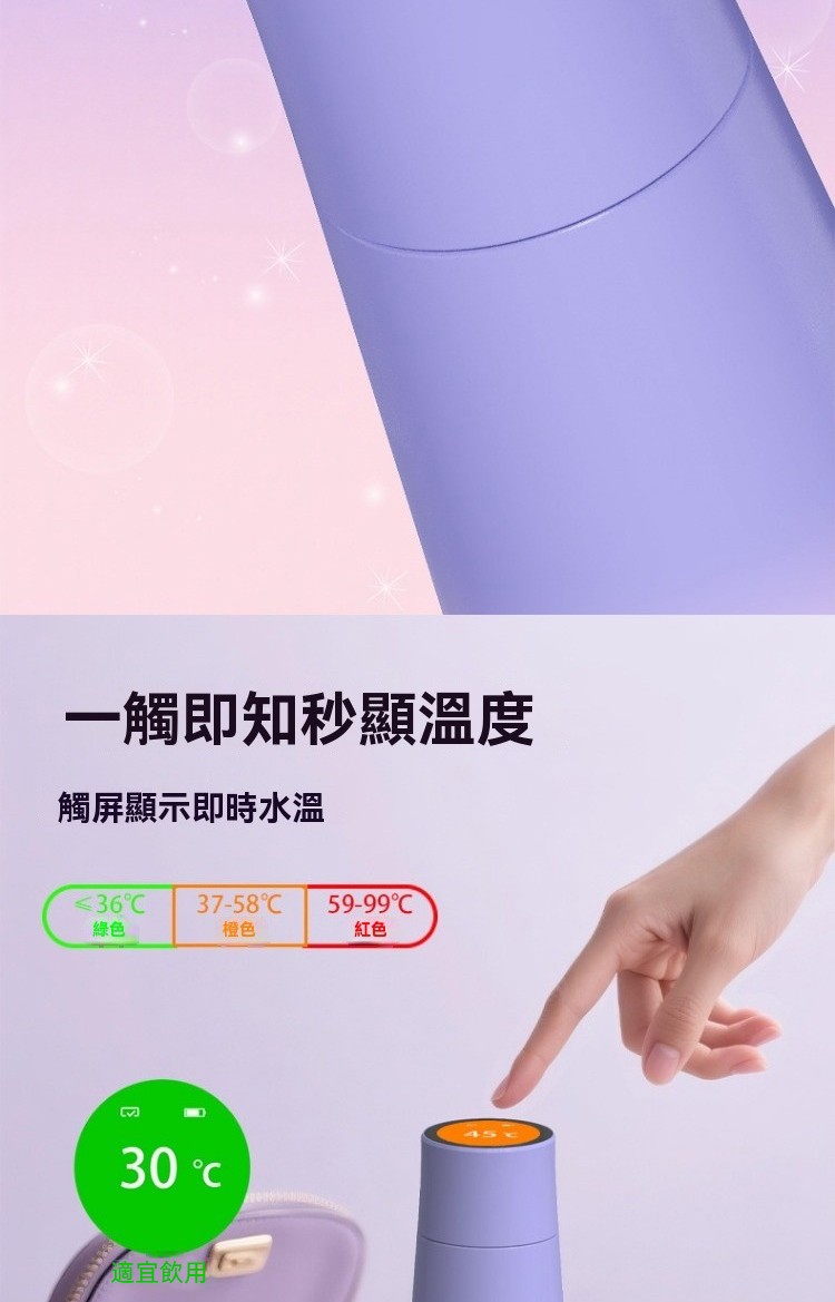 彩屏保温杯 渐变黑 400ML, 彩屏保溫杯 漸變粉 400ML, 彩屏保溫杯 漸變紫 400ML