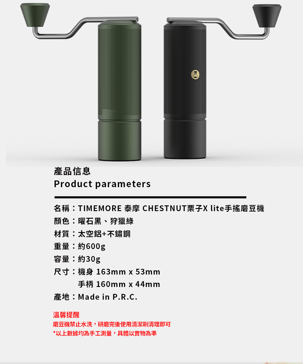 名稱:TIMEMORE 泰摩 CHESTNUT栗子X lite手搖磨豆機