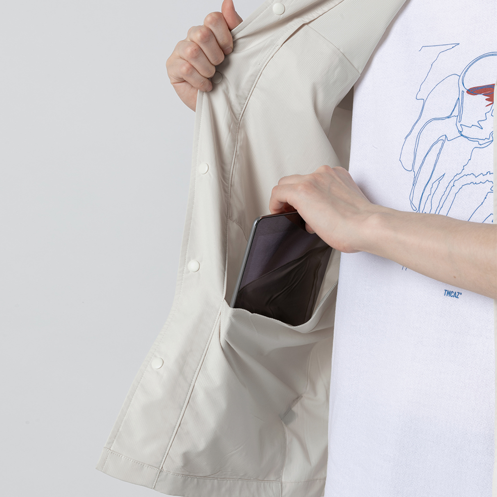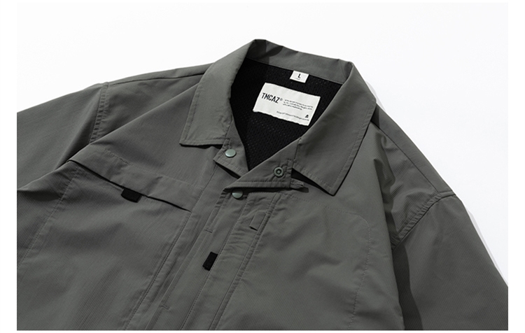 左右胸前處2個隱藏袋袋口,設計為磁吸扣閉合,拿取物件都十分便捷。在右胸袋口處設計有方便掛置眼鏡的掛袢,增加夏日便利性。