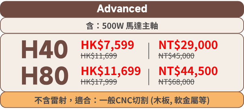 A: 機器配備 500W 和 800W 主軸的安裝支架,可用於路由器安裝。