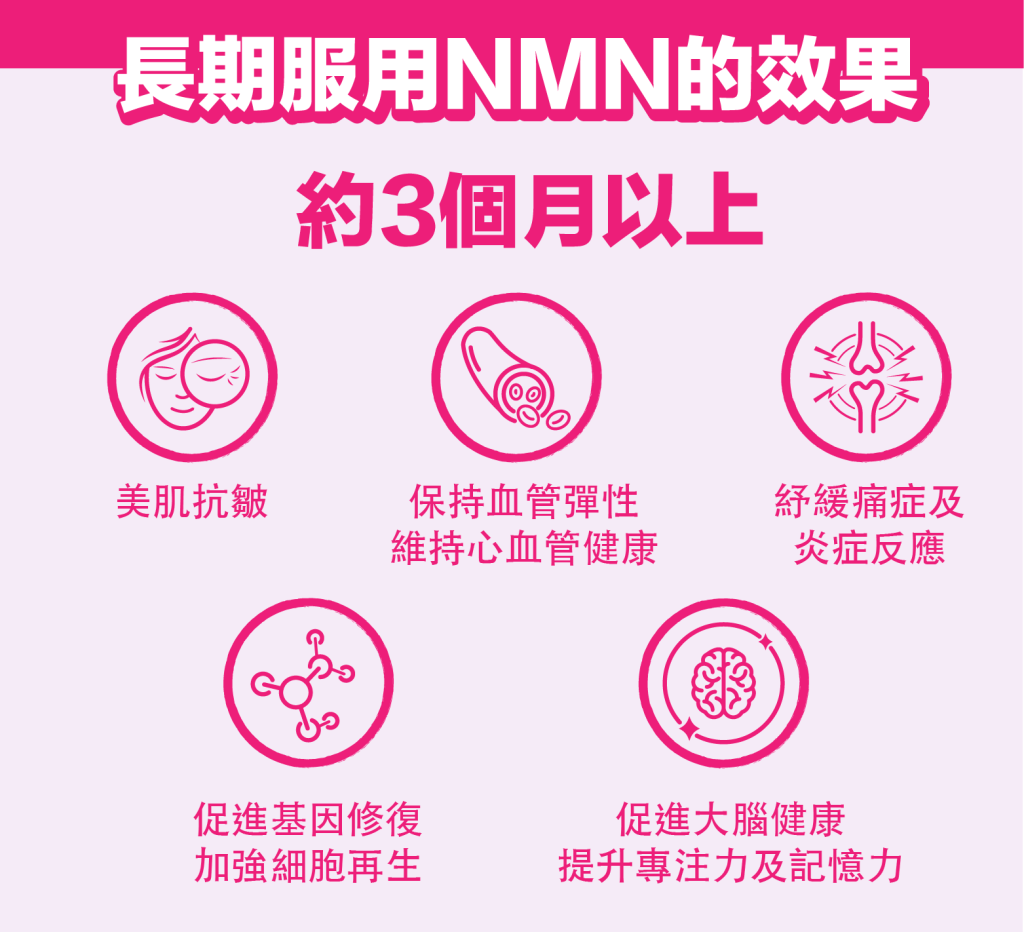 *一般30-40歲、建議每天服用300mg NMN(1粒)劑量。