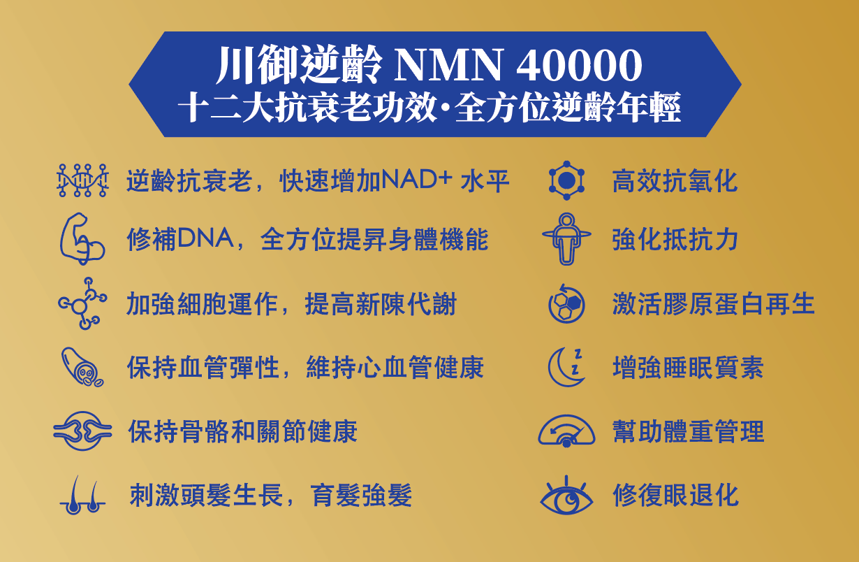 川御NMN團隊深入研究人體細胞及DNA科學,根據多項臨床數據,及與香港頂尖藥廠參考哈佛大學教授 Dr.David Sinclair研究,以最純NMN加上了白藜蘆醇制定了川御鉑鑽版青春逆齡配方,全方位激活細胞,修復受損DNA,做到重拾青春,細胞自信活力。