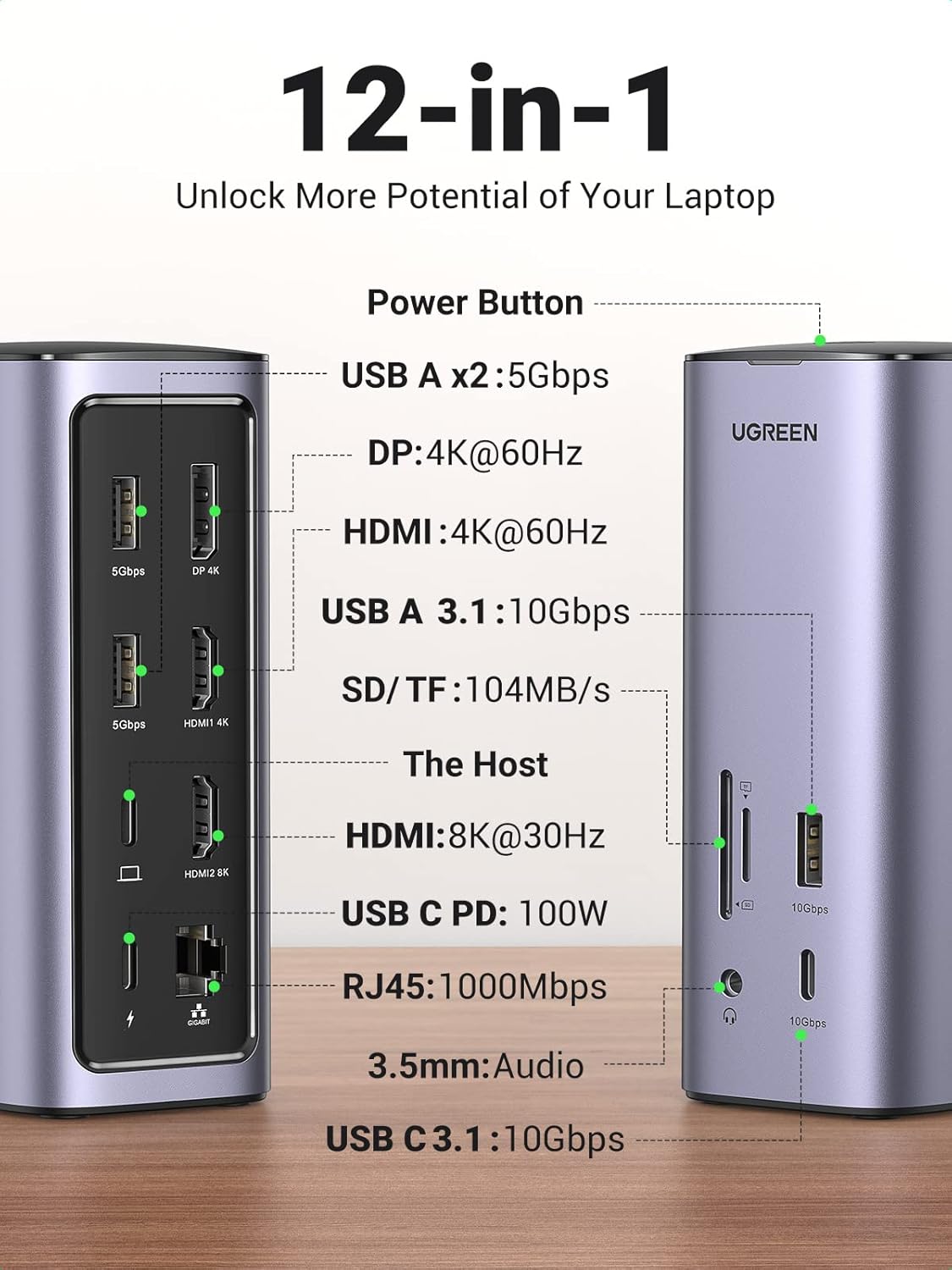 – 顯示輸出:1x HDMI 8K、1x HDMI 4K、1x DP 4K。