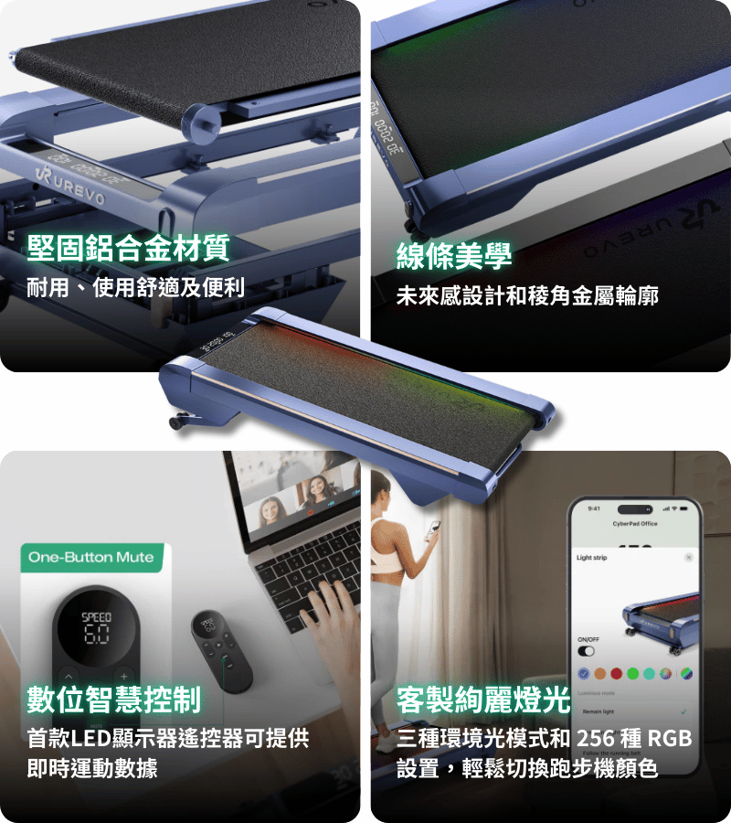 A: 不用擔心。CyberPad 採用 低噪音無刷馬達設計,運轉聲比傳統跑步機更安靜,在家運動不容易打擾家人,也適合辦公室環境。