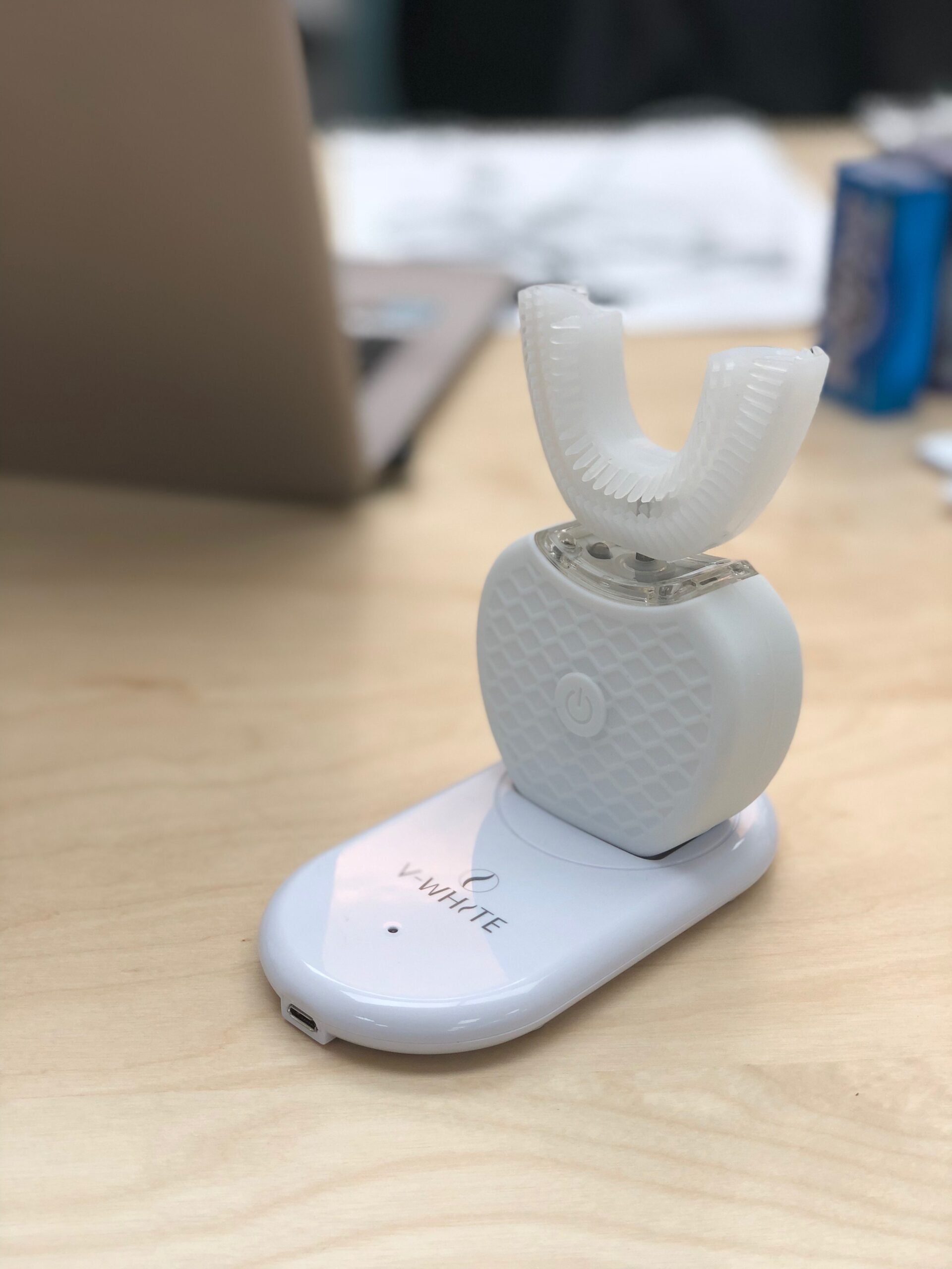 V-White 是設計師革命性的發明,目標是為了方便你刷牙,擁有FDA認證,可以令你在10秒鐘+ 不用雙手完成刷牙、清潔牙齒!被譽為下世紀必用的電動牙刷!