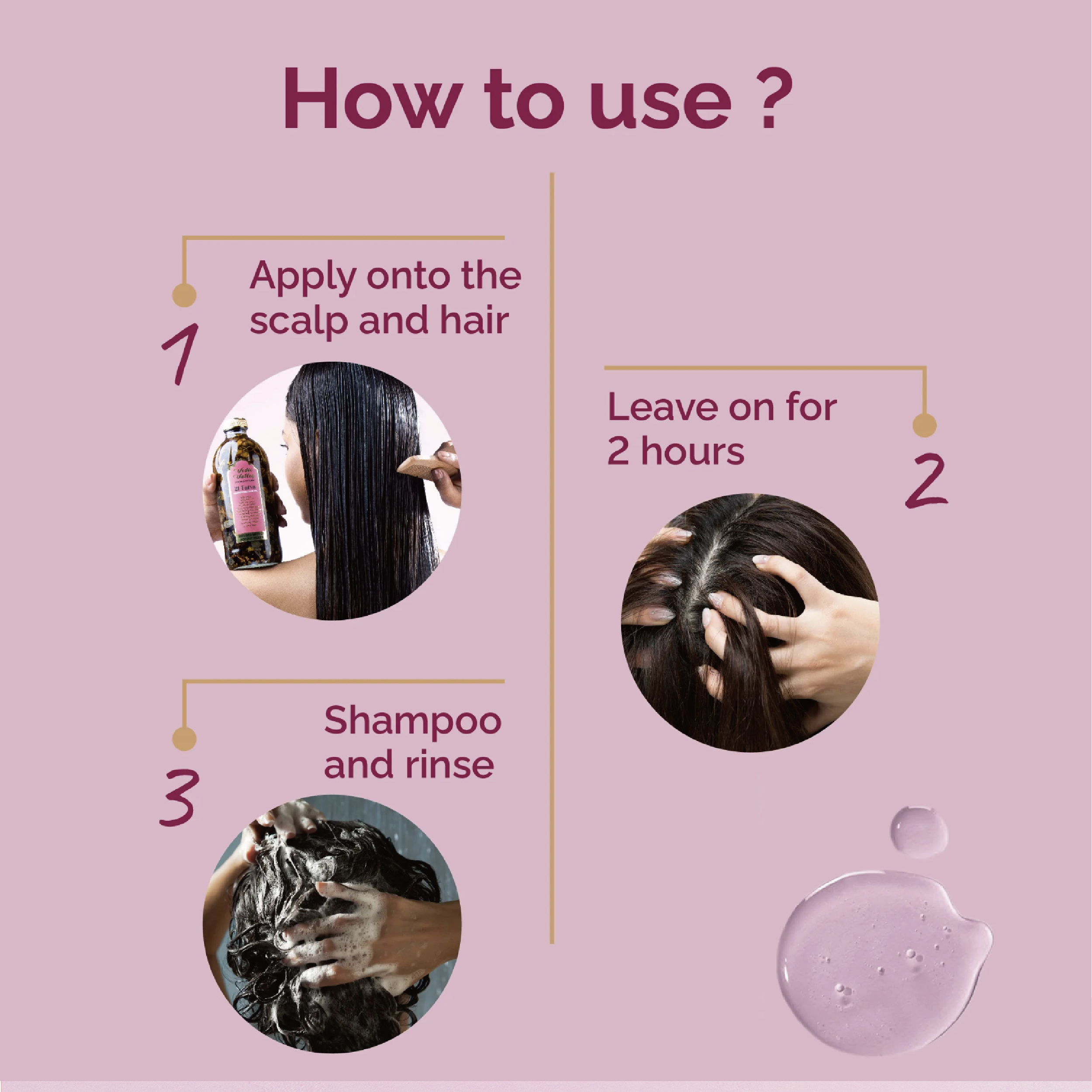 3. *靜置*:讓護髮油在頭皮和頭髮上靜置至少30分鐘,最好過夜,以便深入滋養和修復。