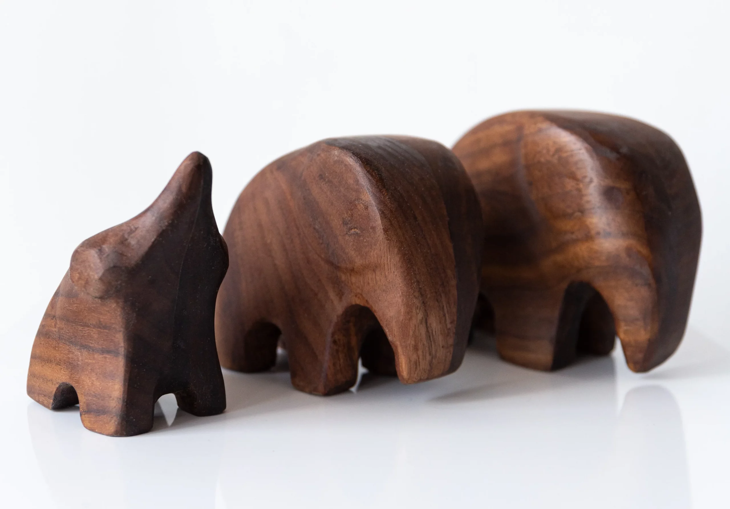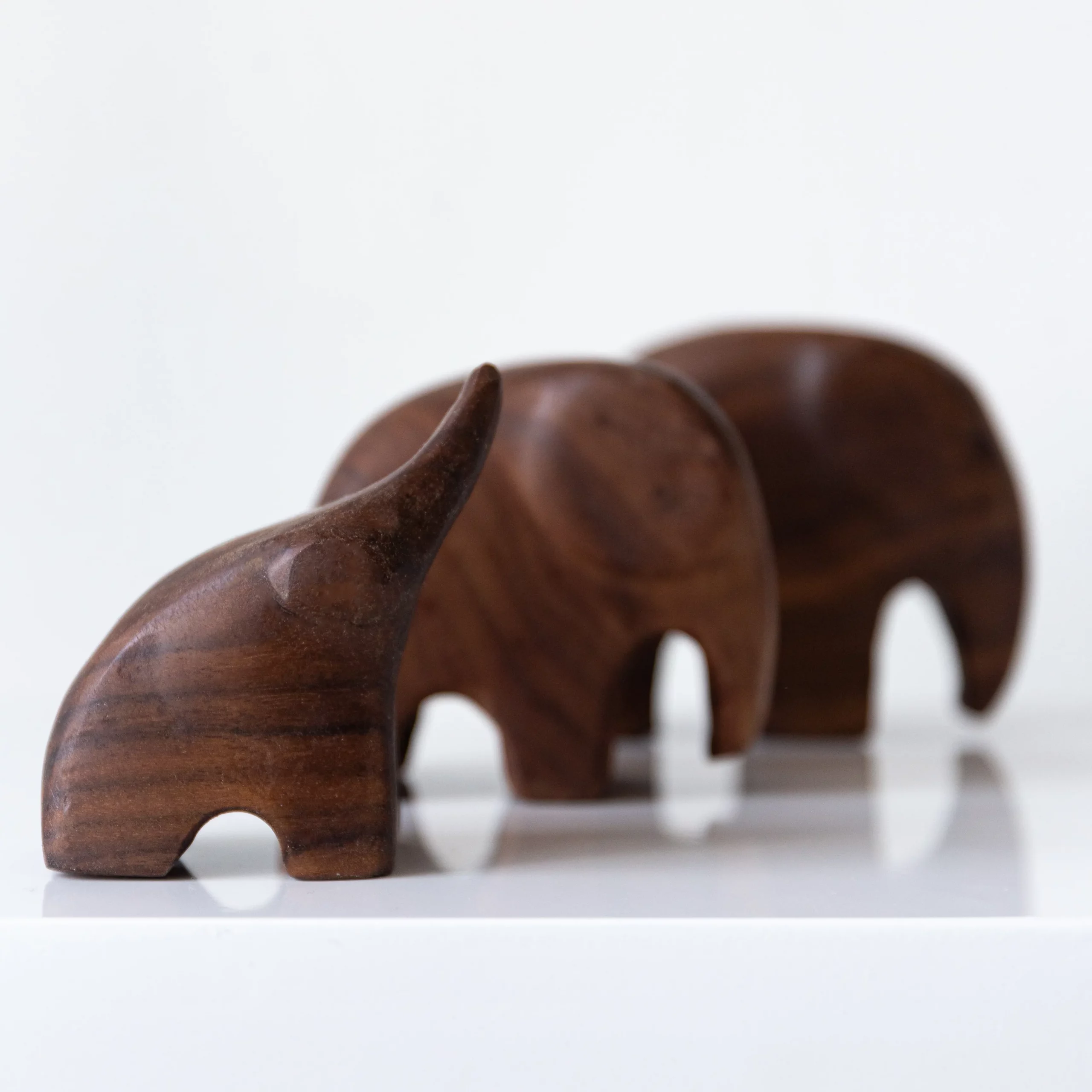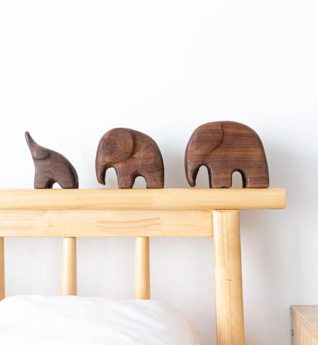 胡桃木木質結實而且堅硬,穩定性好和耐用。 同時,胡桃木的手感非常細緻,紋理清晰,顏色沉實,另人倍感高貴。所以,師傅故意用上胡桃木,令Wanu大象一家除了看上去可愛之外,還能給人一種優雅脫俗的感覺。