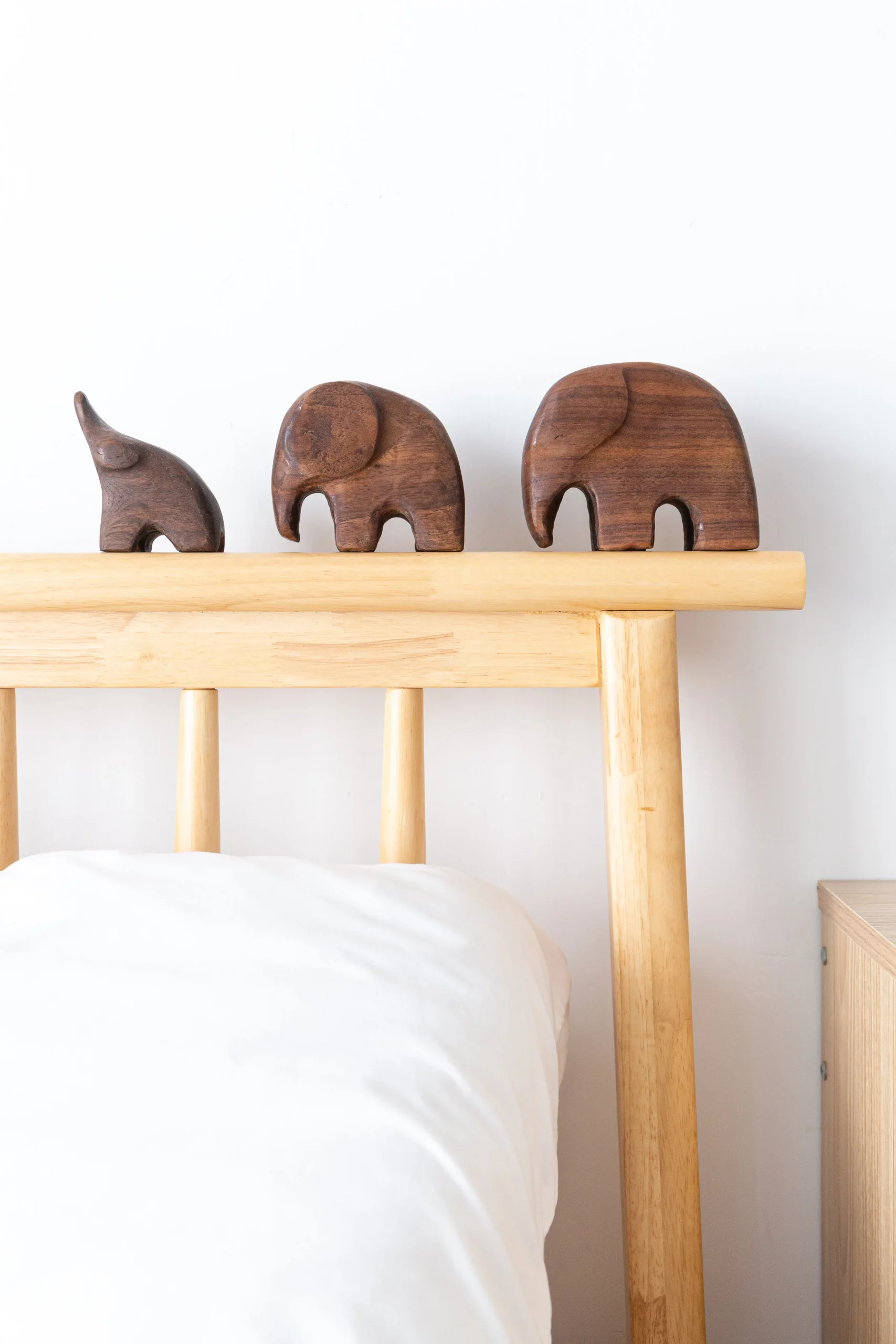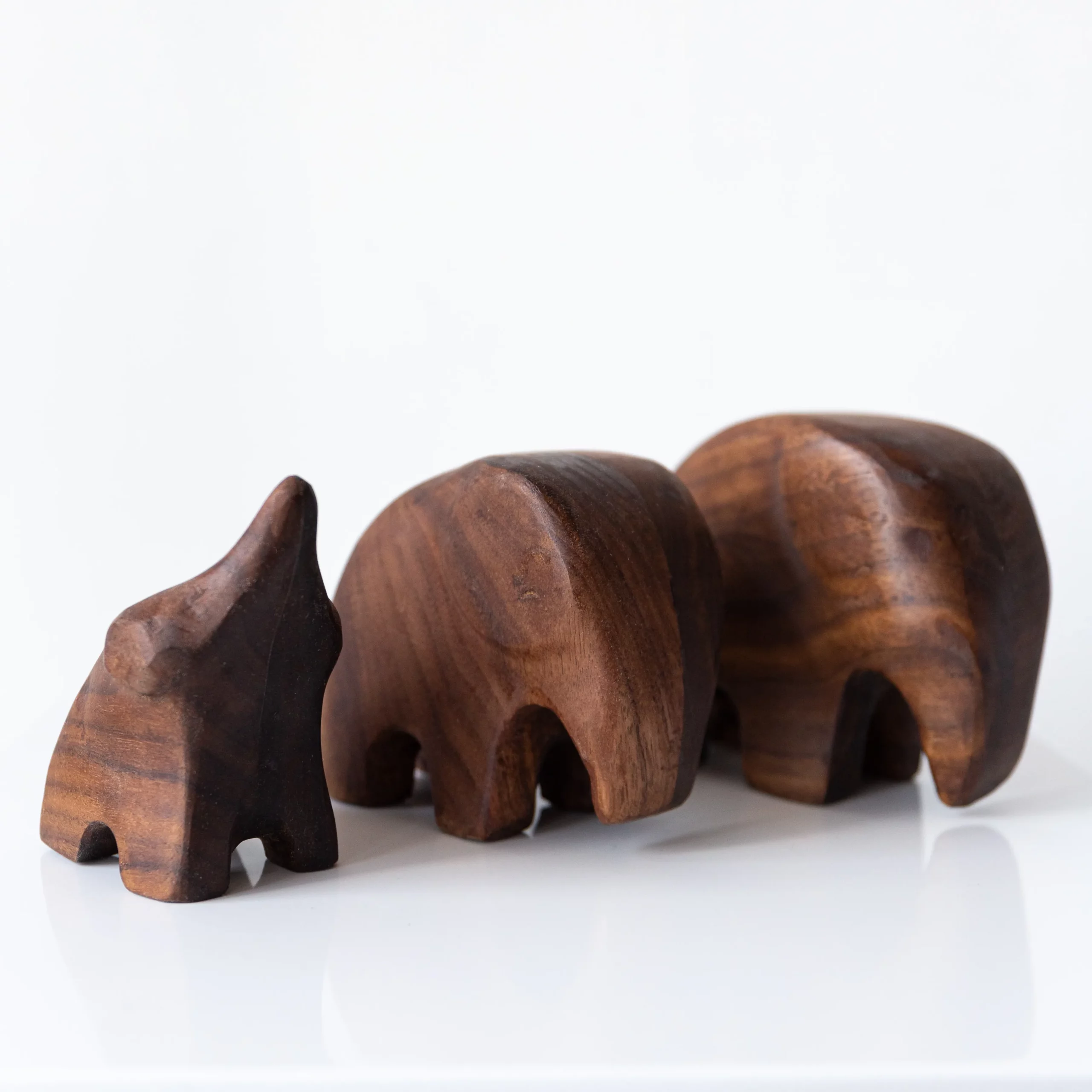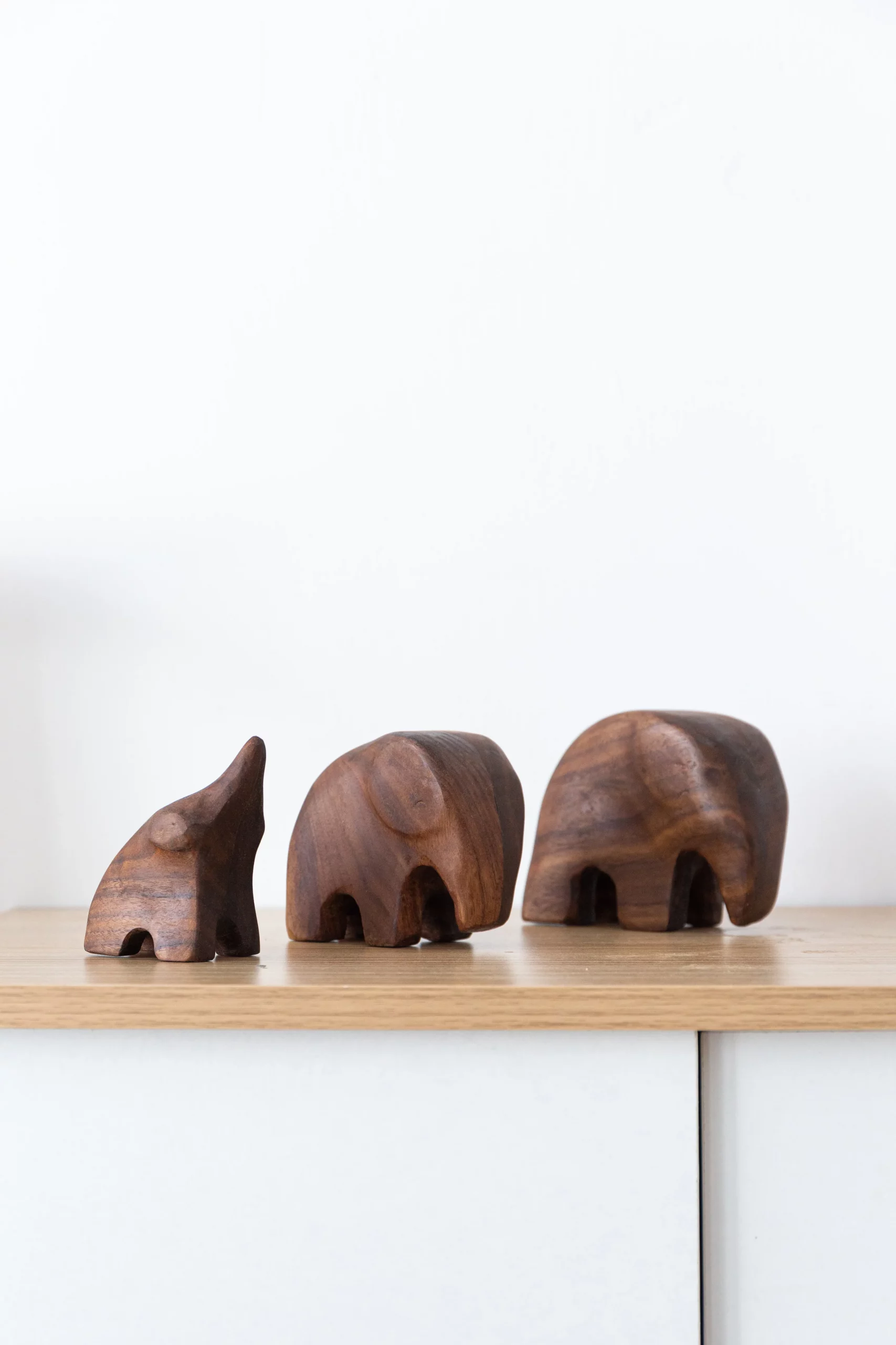 胡桃木木質結實而且堅硬,穩定性好和耐用。 同時,胡桃木的手感非常細緻,紋理清晰,顏色沉實,另人倍感高貴。所以,師傅故意用上胡桃木,令Wanu大象一家除了看上去可愛之外,還能給人一種優雅脫俗的感覺。