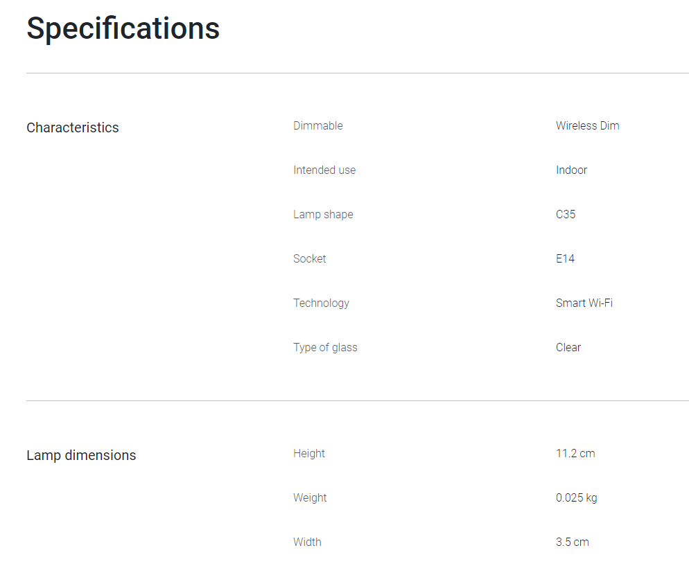 Packaging dimensions and weight [Wi-Fi BLE 40W C35 E14 927-65 CL 1PF/6]
