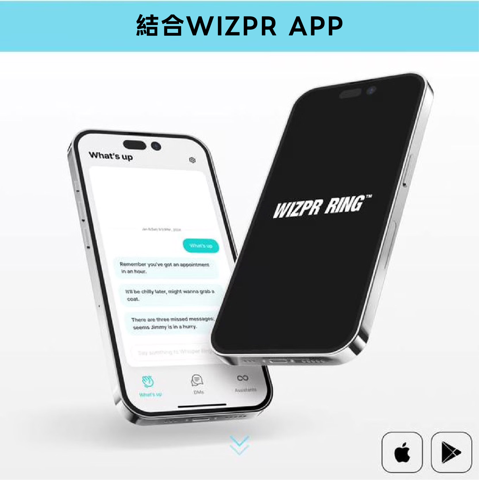 WIZPR RING 搭配智慧型手機應用程式使用,應用程式存儲各種 AI 助理供用戶選擇。它還啟用「What’s up」功能,根據你分享的資訊(如行事曆、天氣、位置等)建議你需要的內容。