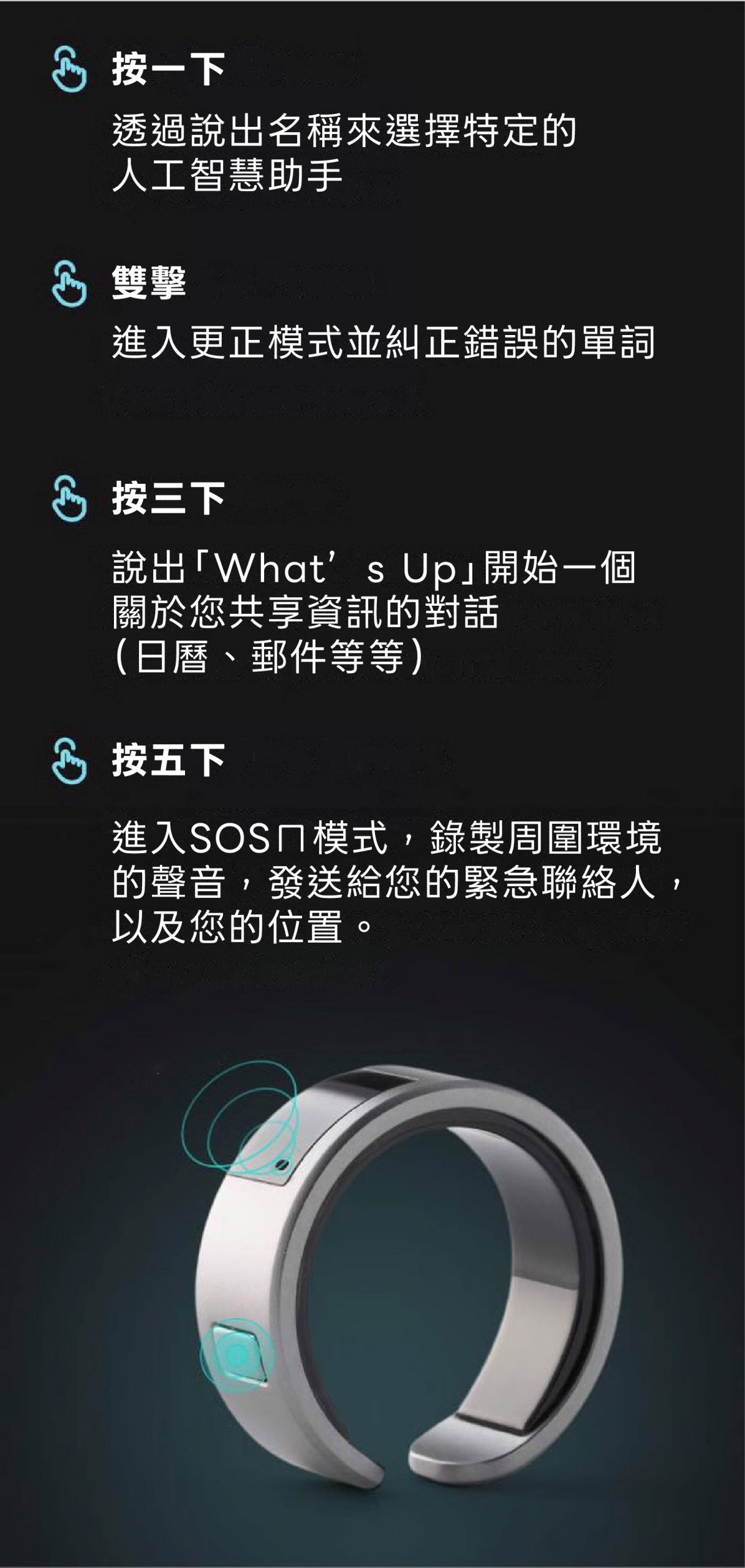 來認識這款革命性的 AI 戒指吧!讓你隨時隨地都能透過語音方便地與 AI 互動。它能聽懂你的指令,就算你只是輕聲細語,也會立即回應並執行,完全不用喚醒詞,來認識 WIZPR RING吧!