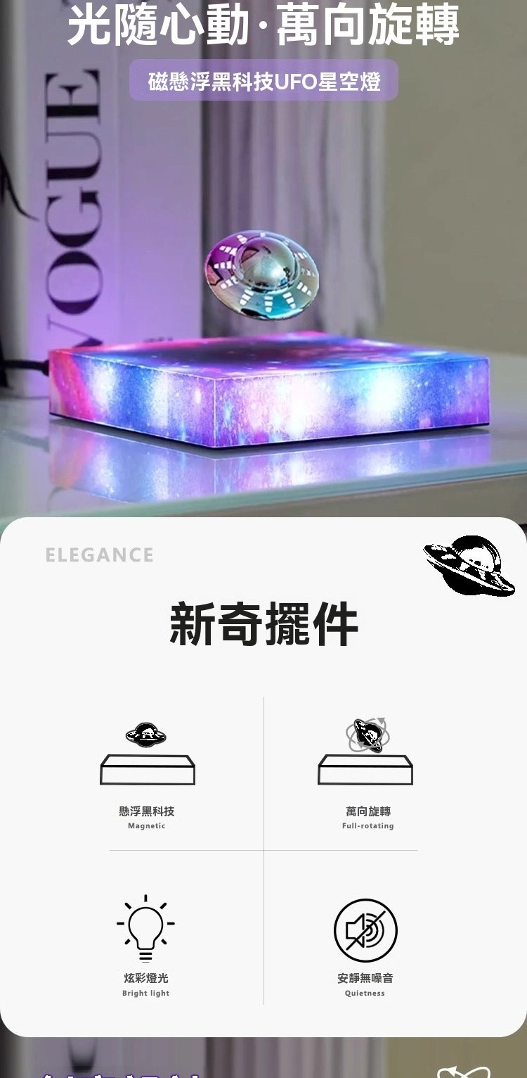 搶先留言 “物有引力 黑科技旋轉磁懸浮飛碟星空燈 (品牌直送)”