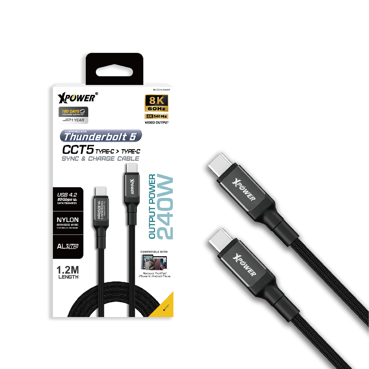 CCT5 1.2M 鋁合金 Thunderbolt 5 240W USB4.2 高速傳輸充電 Type-C>Type-C線